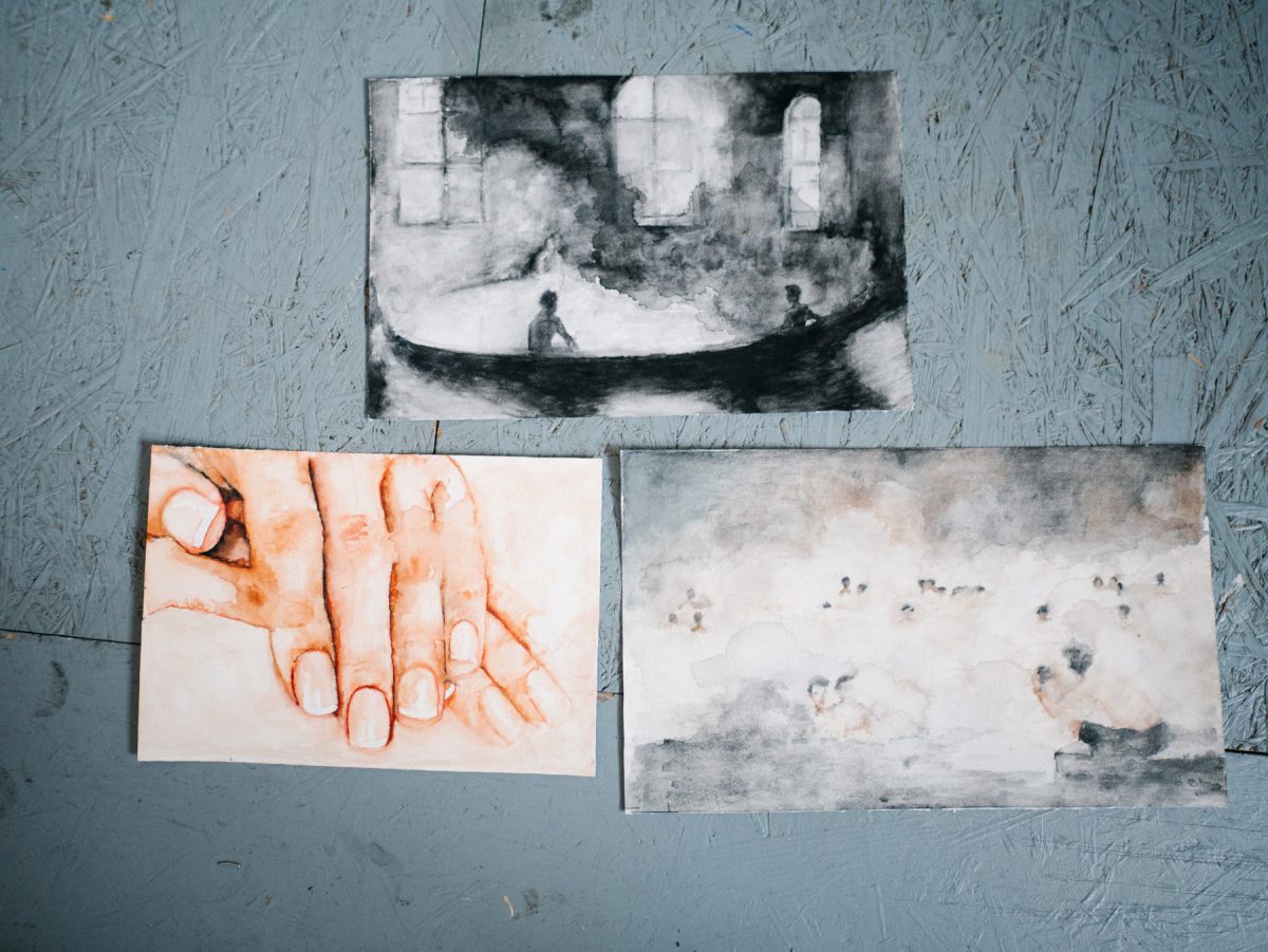 In my usual practice, I work mainly with sculpture, often using heavy or even toxic materials like copper or lithium. So I tend to work outside the city, in the countryside, where I also have the space I need. At the same time, I’ve always enjoyed painting with watercolors. I have a neurological condition called Essential Tremor, which makes my hands shake and this complicates the painting process a bit, but that’s exactly what draws me to it. It fascinates me to explore this relationship between my body, its movement, and the paint itself.