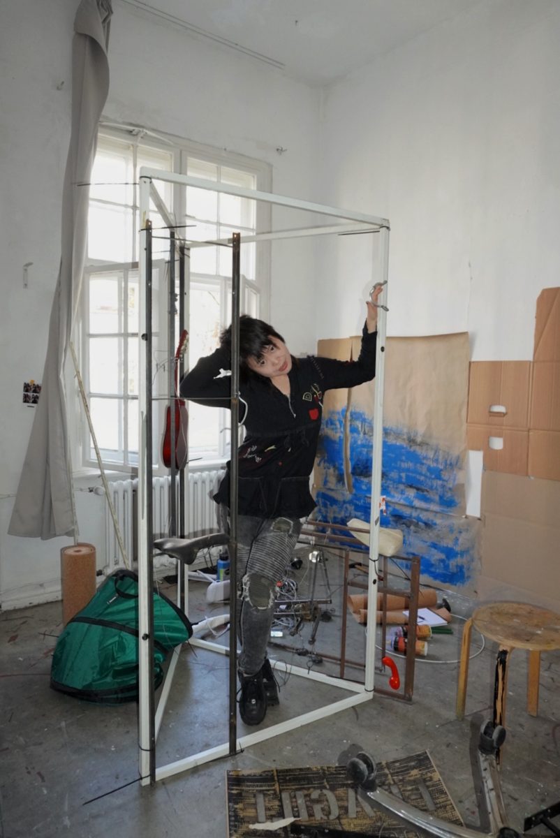So, when I showed my father my studio at GlogauAIR, he was shocked because he thought I was digging from a trash bin. He didn’t know it is easy to collect abandoned things here. He was like, oh, my God, it’s so bad. I didn’t expect your life to have this much struggle in Europe! I was like, it’s not that bad!