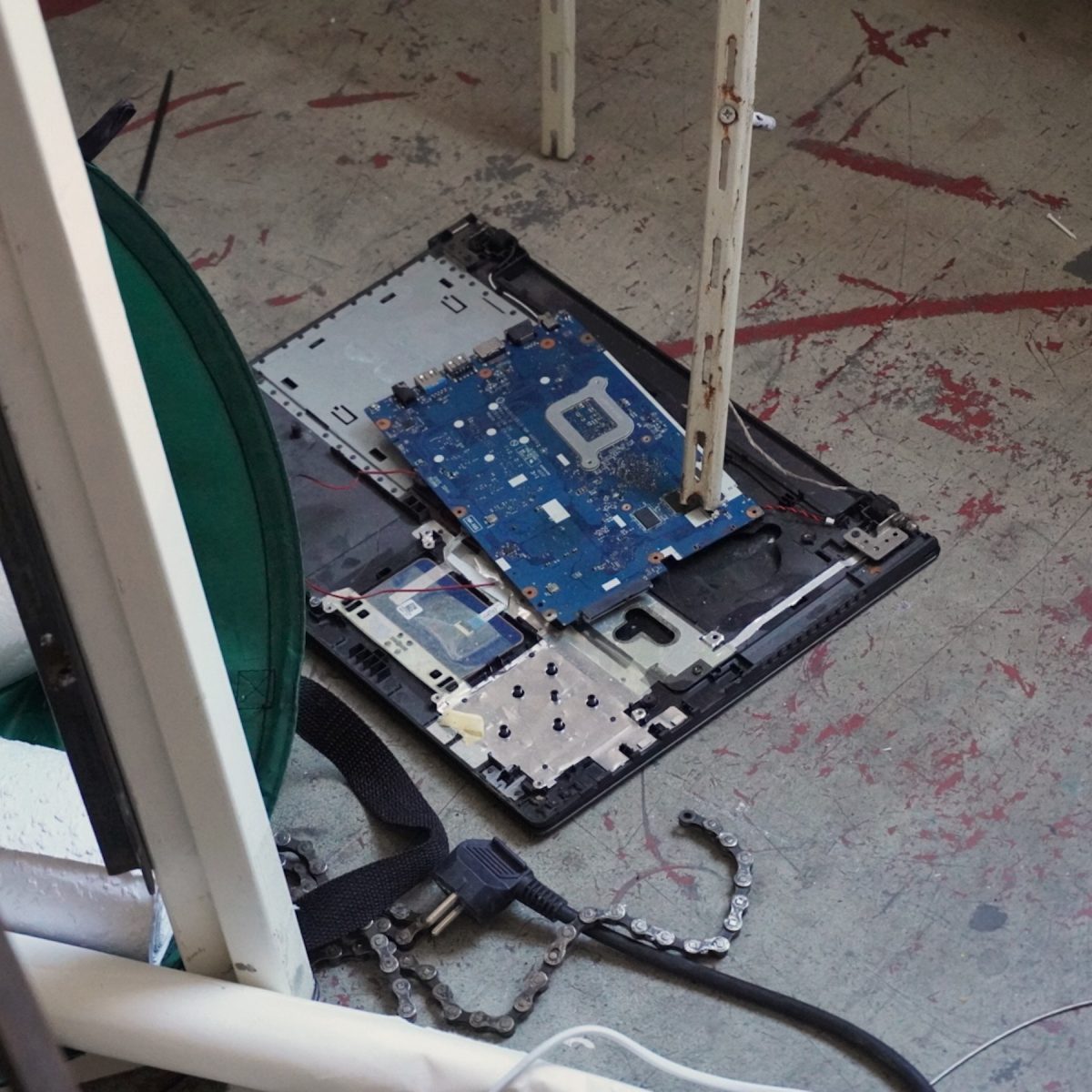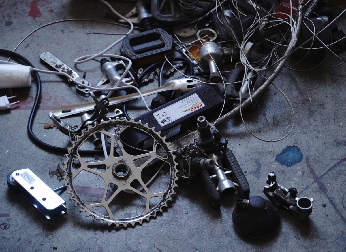 For my residency, I’ve collected a lot of trash– mainly bicycle parts. I want to turn them into a music machine, to play by themselves. But at the same time, I want to do a performance to disturb the machine when playing–to have a dialogue with them. It reflects my concept of human and non-human– a conversation between them and me.