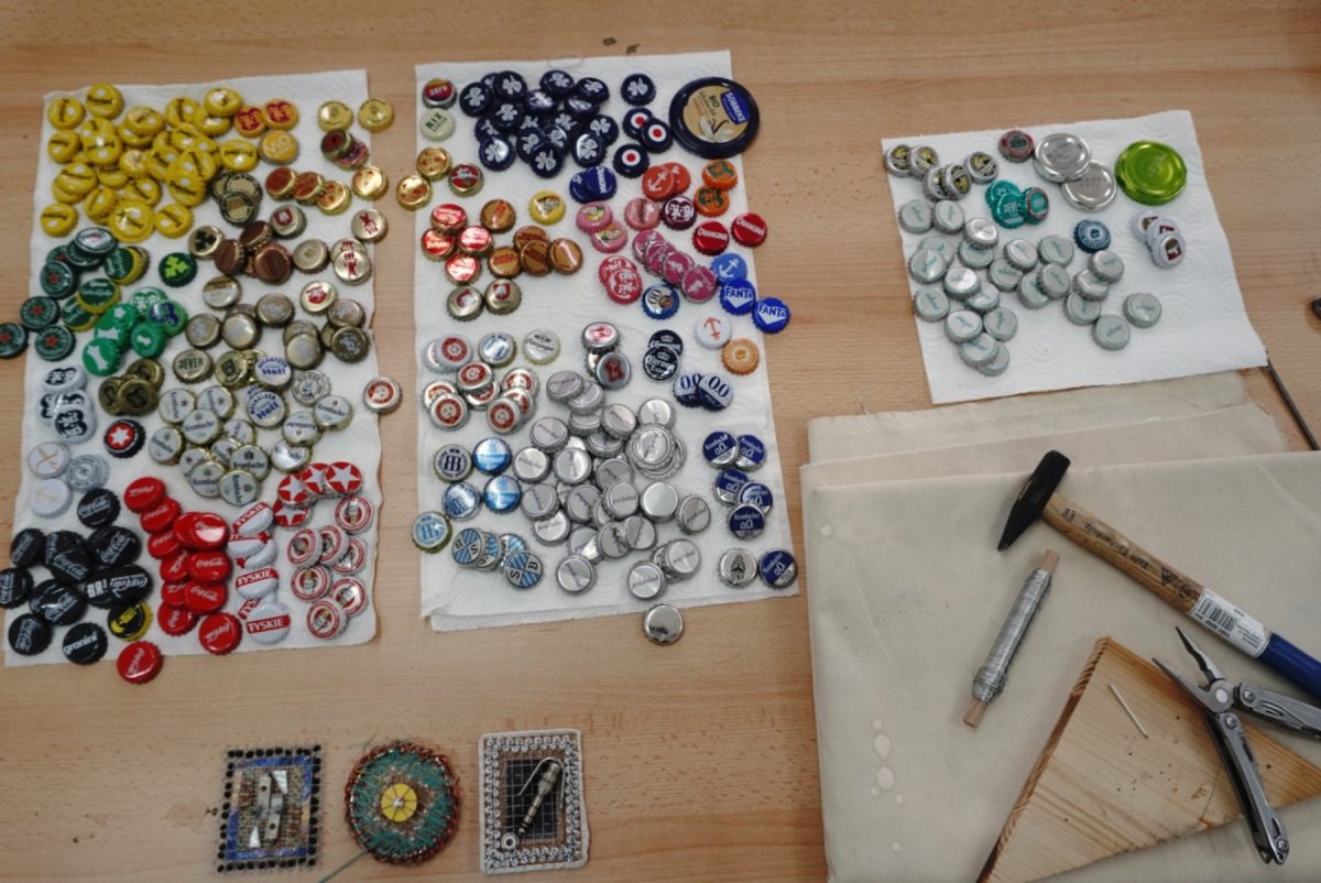 I like to recycle things. Just based on what’s available is different. I used to have a shop I could go to in New Orleans that salvaged building material for one dollar a piece. Or buckets and buckets of bottle caps. You could just pick them up and weigh it out and buy them. It’s different in Berlin just by what’s available. It’s what comes to you. The first piece of mesh that came to me I thought , this is interesting. Let me try working with that. I think the city lends you its tools.