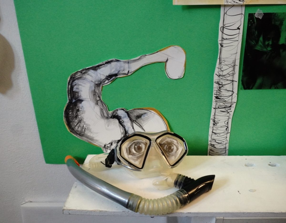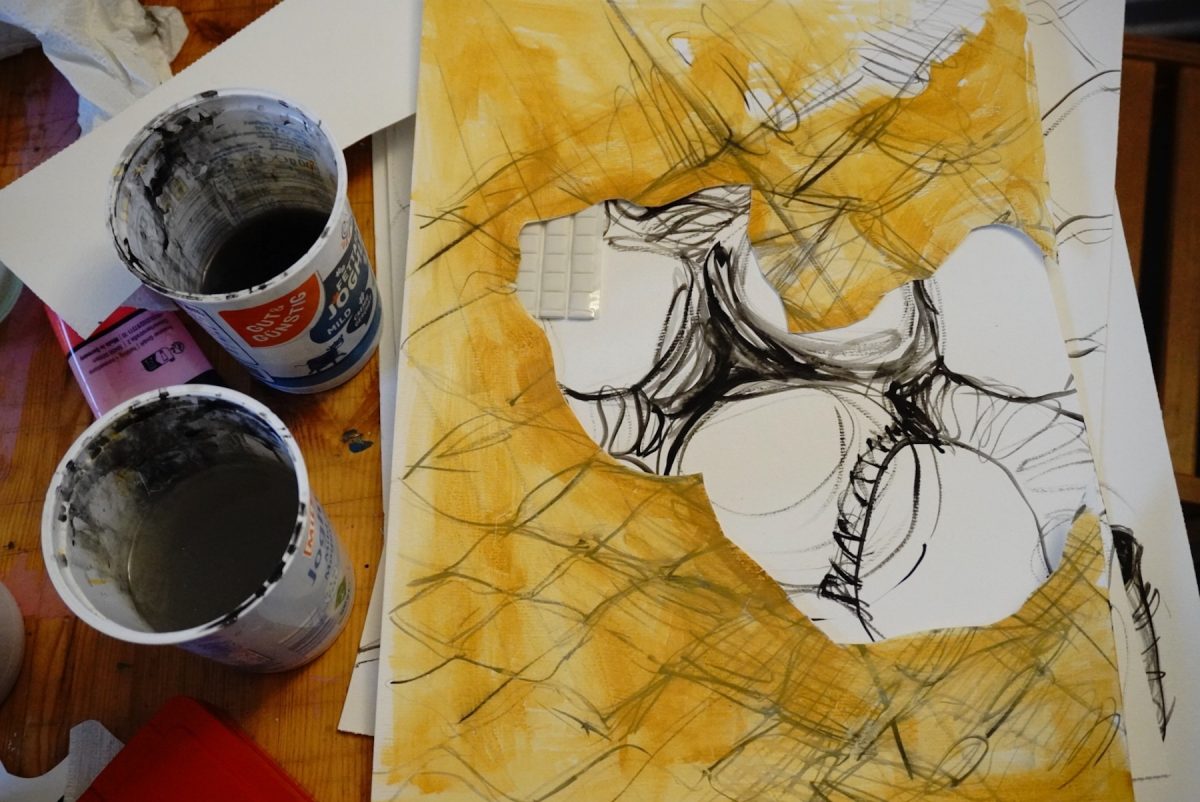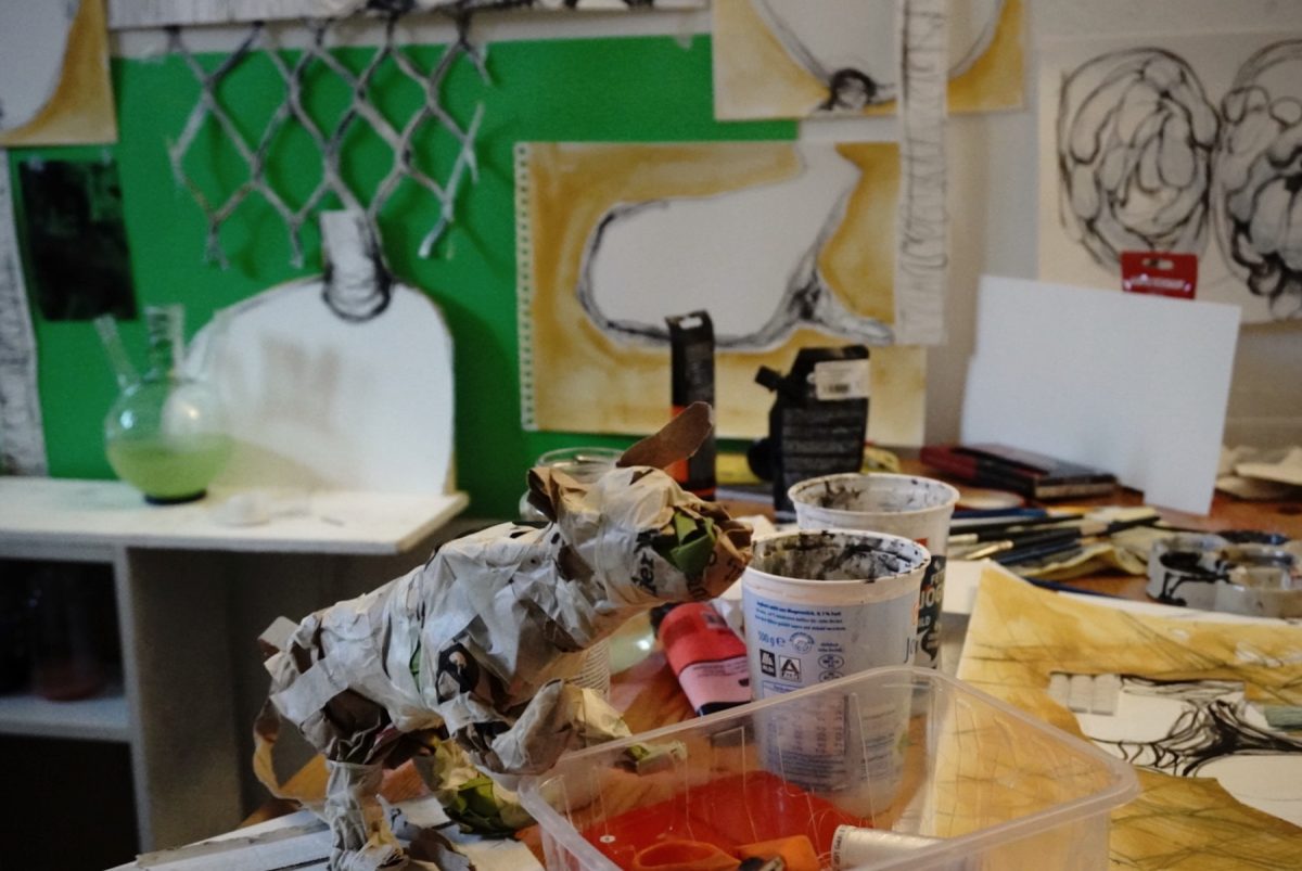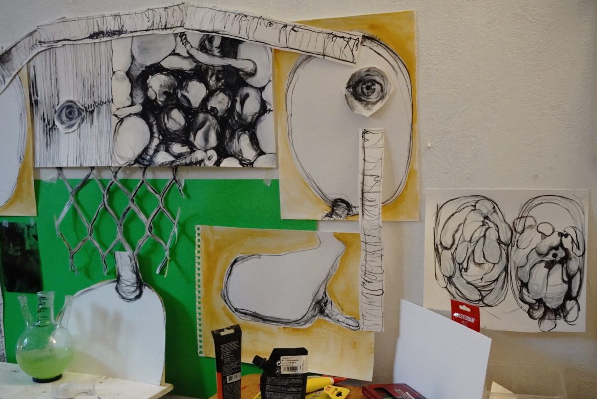 One of them is an installation, mostly of works on paper, as well as some objects, that is site-responsive and grows slowly throughout the residency on the walls of my studio. Shortly before coming to GlogauAIR I had an exhibition where I was able to work in a similar way, by working on drawings in the space where they were eventually exhibited and responding to that space over time.