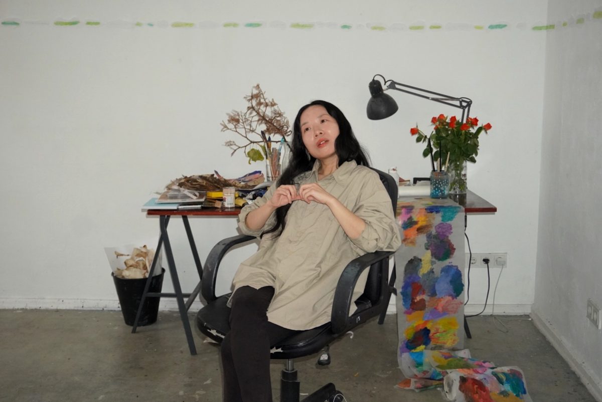 I’m a visual artist working with installation, sculpture and painting. I’m Chinese-Canadian. I was born in China and I moved to Canada about sixteen years ago. For the past ten years, I’ve lived in Vancouver. My practice is quite process driven. I am obsessed with designing processes and coming up with different methods of making. Currently, I’ve gravitated towards the idea of designing a process so that the work can make itself. At GlogauAIR, I’m taking inspiration directly from my daily routine and the surroundings. I try to embrace chance elements and unpredictable factors such as fragments of conversations I overhear, the rain, and the objects, flowers, and tree branches I stumble upon during my walks in the neighborhood.