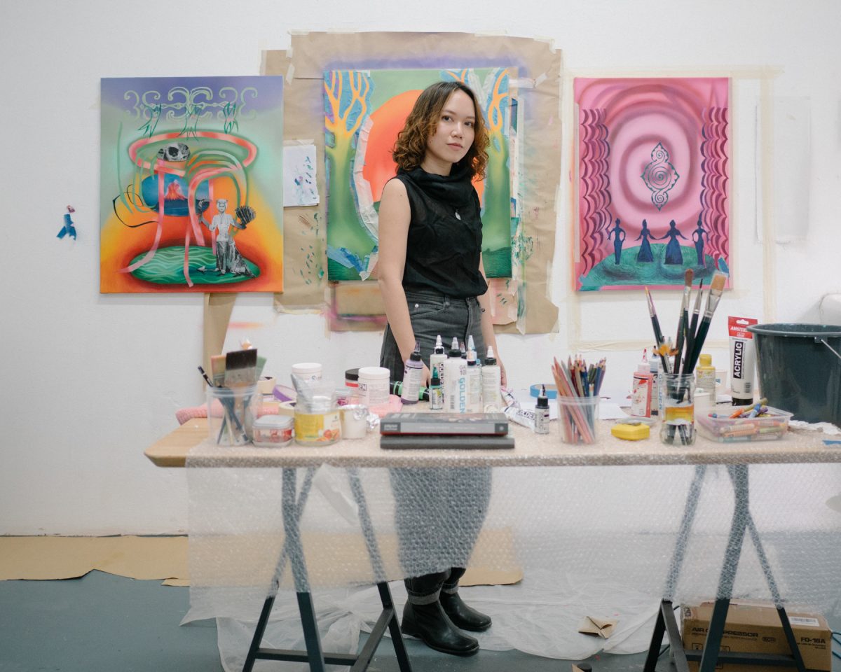 Another recurring intuitive element in my work is my use of color: strong, vivid, and artificial-looking tones. I think this comes from my early inspiration and interest in psychedelics and counterculture. At some point I also explored the history of these colors in art, they’re often associated with lowbrow culture, not typically with fine art. They symbolize intoxication and carry a more sinister meaning. These associations only reinforce my playful process and add a poetic layer to it, since I’m very drawn to strangeness and oddity, they reflect that enduring interest of mine.