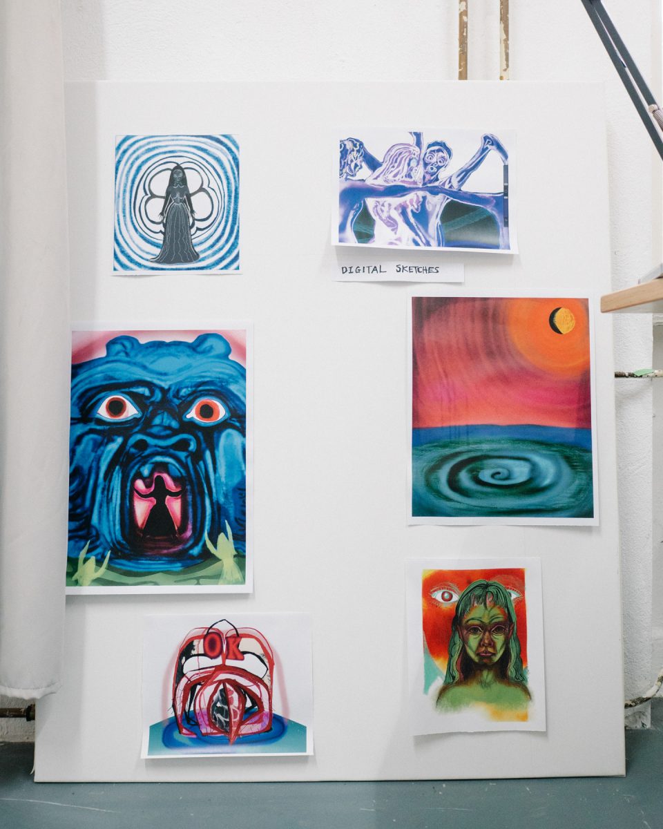 In my process I move between digital and traditional techniques and mediums. Sometimes I sketch digitally first and then develop the final work as a painting or drawing. Other times I sketch by hand and it ends up becoming a digital piece. I’ve always been inspired by graphic art, especially poster art, like the German Expressionist posters, or films from the 60s and 70s with their strong graphic look. I aim to bring that graphic feeling into my work.