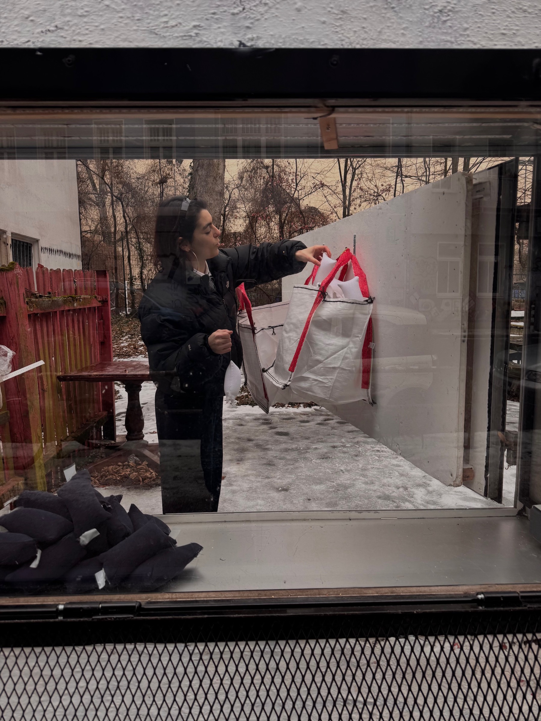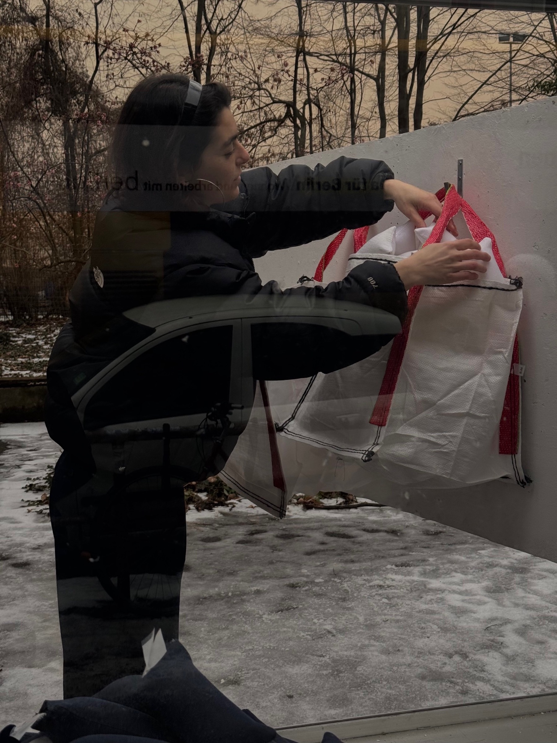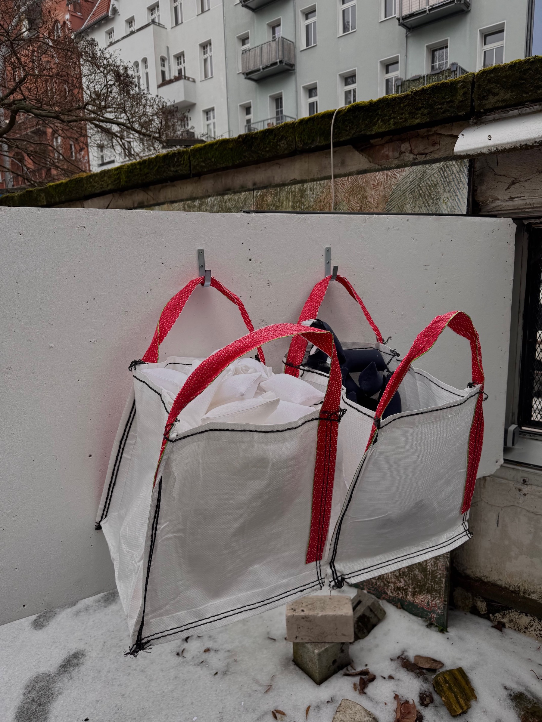 I bought bags for my work materials. I read they could hold up to 120 kilos. Debris, heavy loads. I’ve filled them with everything, and they weigh nothing. They take up space and offer no resistance. Sigh. Expectations of weight reshape gestures. Minimal gestures, constant and conscious. It’s not a load if air is what’s inside. Sigh. I don’t know if lightness is the absence of weight, or the way you hold it. I carry bags of kisses that feel like debris. But I don’t mind carrying them. How to hold weight without ceasing to perceive subtlety?
