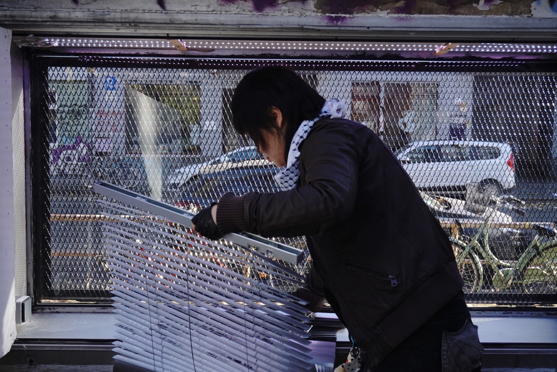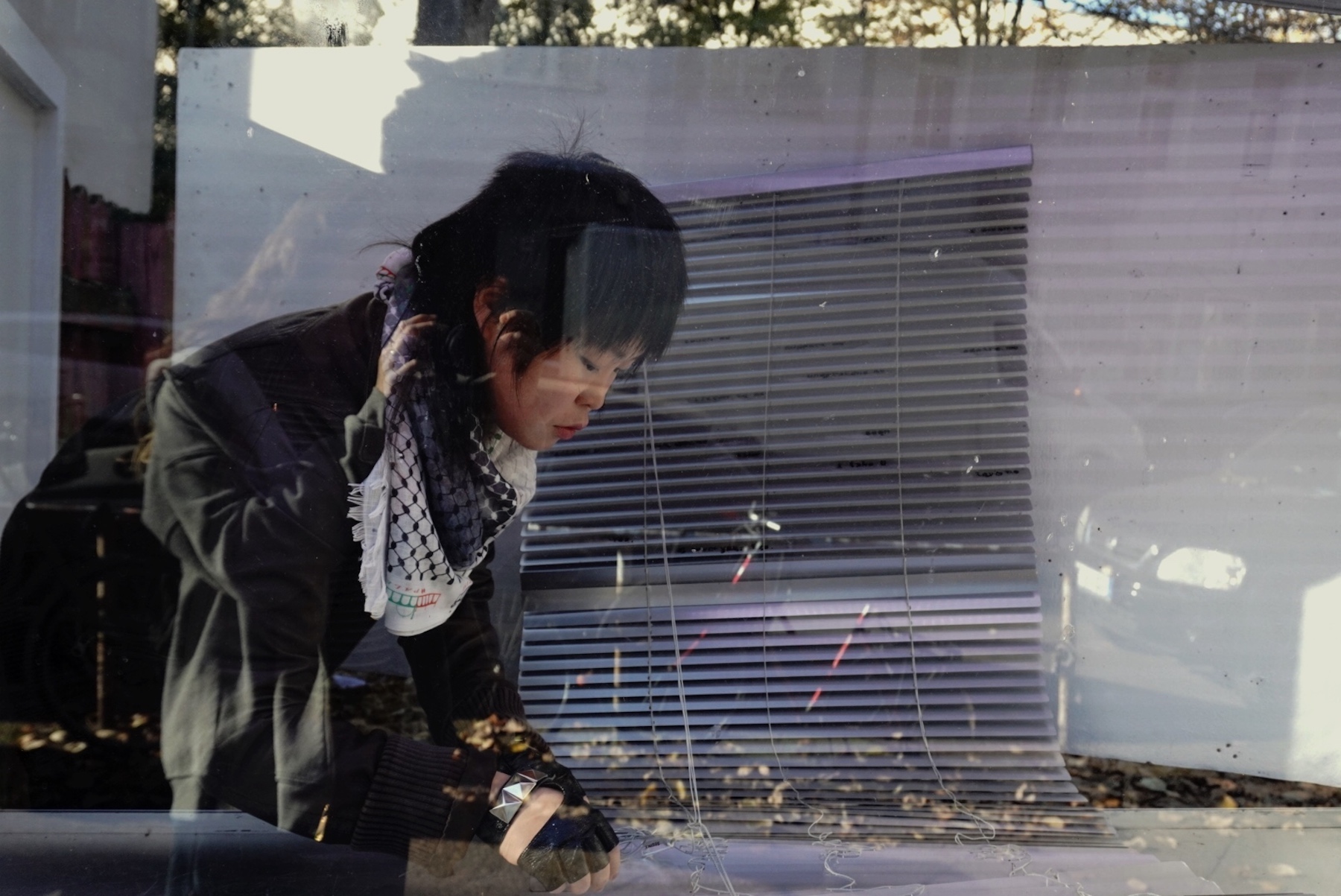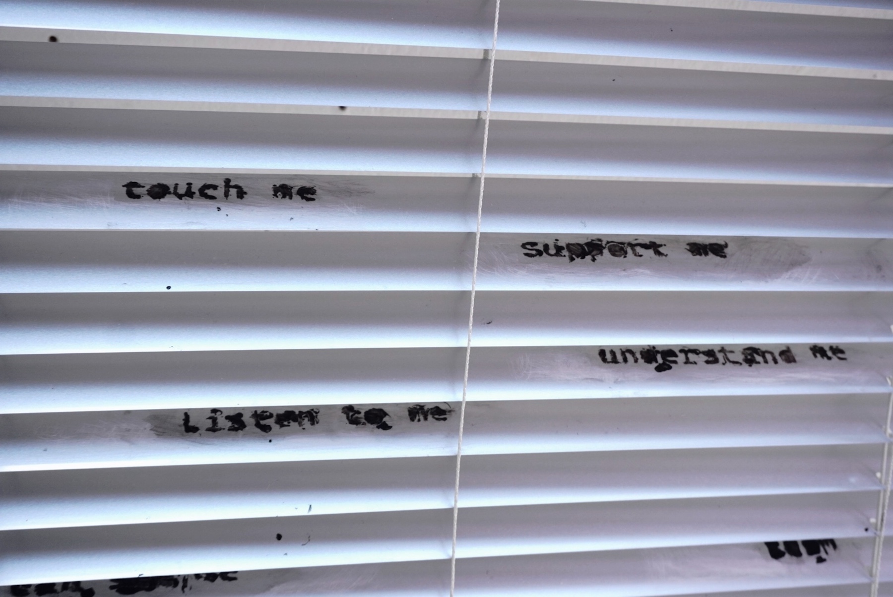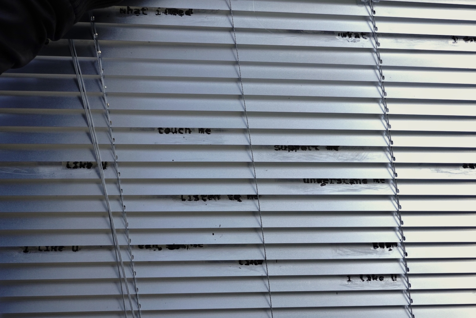 Intimate confessions and half-dreamed phrases are inscribed on blinds that both reveal and conceal.