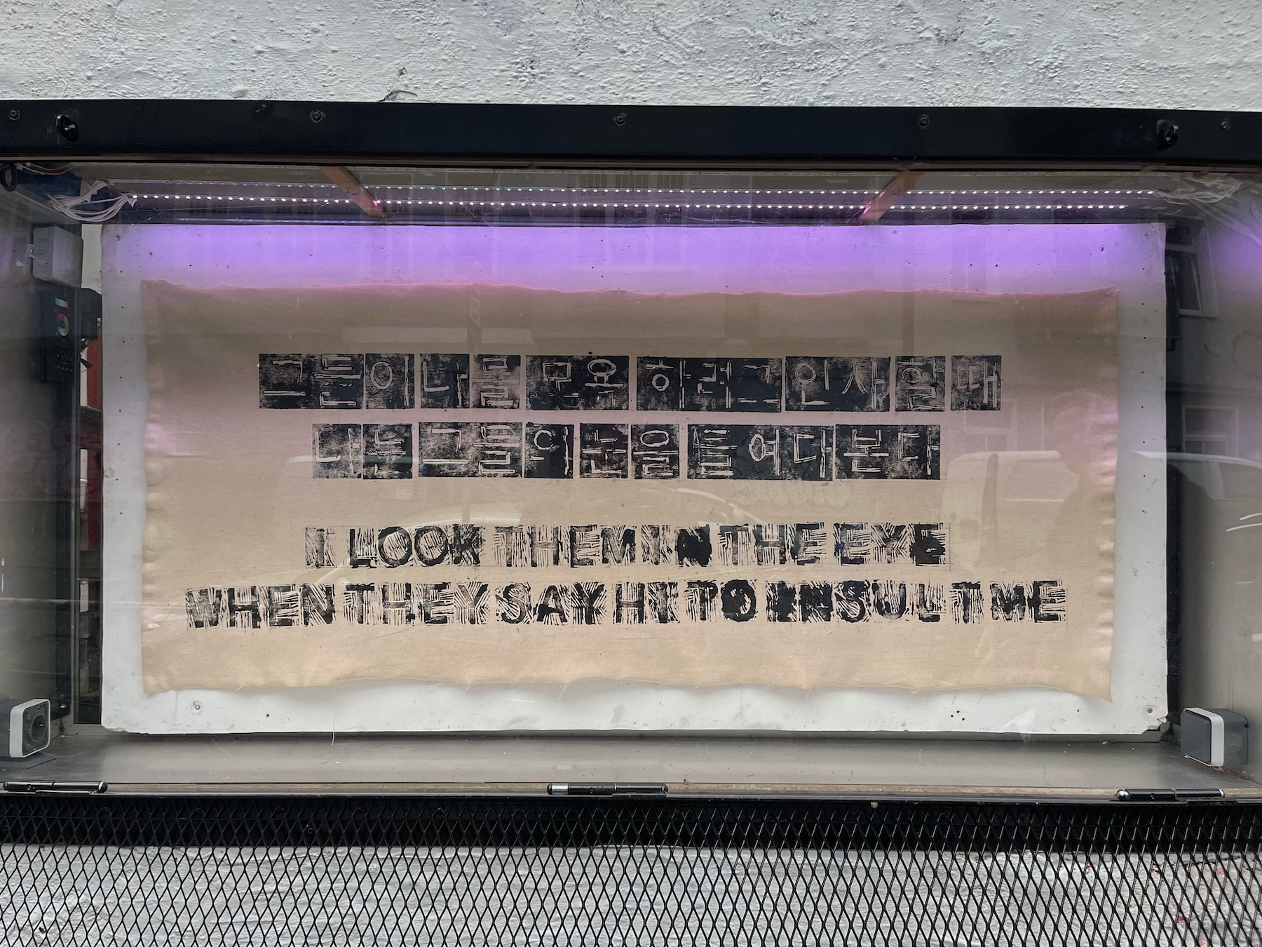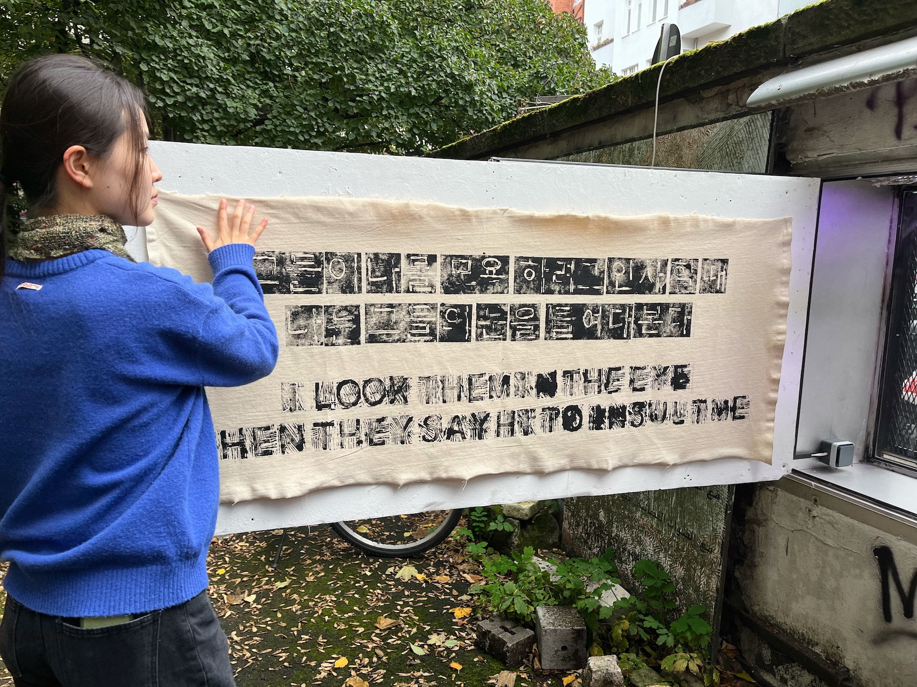 Excerpted from “Intimate Strangers,” a text recently presented in a multilingual reading under the same title, the sentence attempts to subvert the power relations between me and those I had met on the streets. It is not only a refusal to play the game where I take the role as a victim of racism and misogyny, but a liberation from the wariness I internalized as an Asian woman being in Western countries.