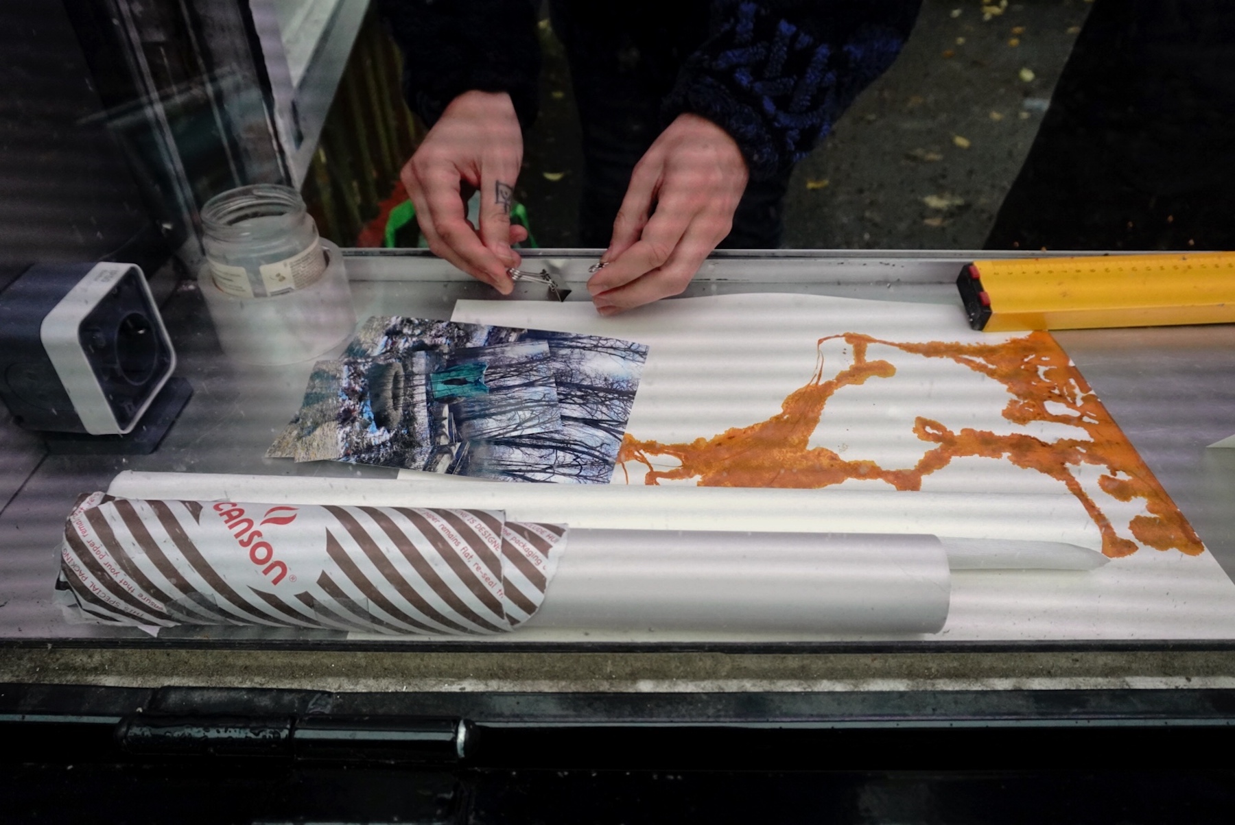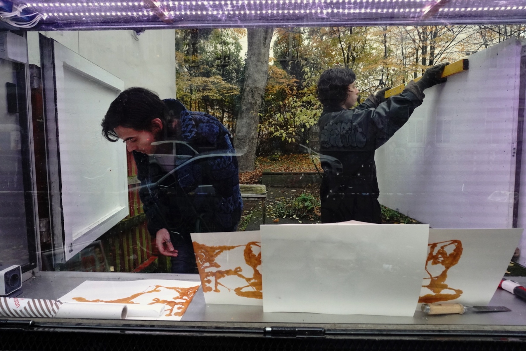 An apparently symmetrical image acts as a metaphor for sameness, while a sheet of paper hindering the light acts as an invitation to move and observe things from a different perspective.