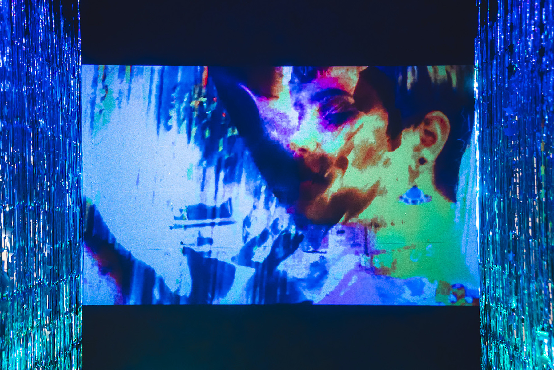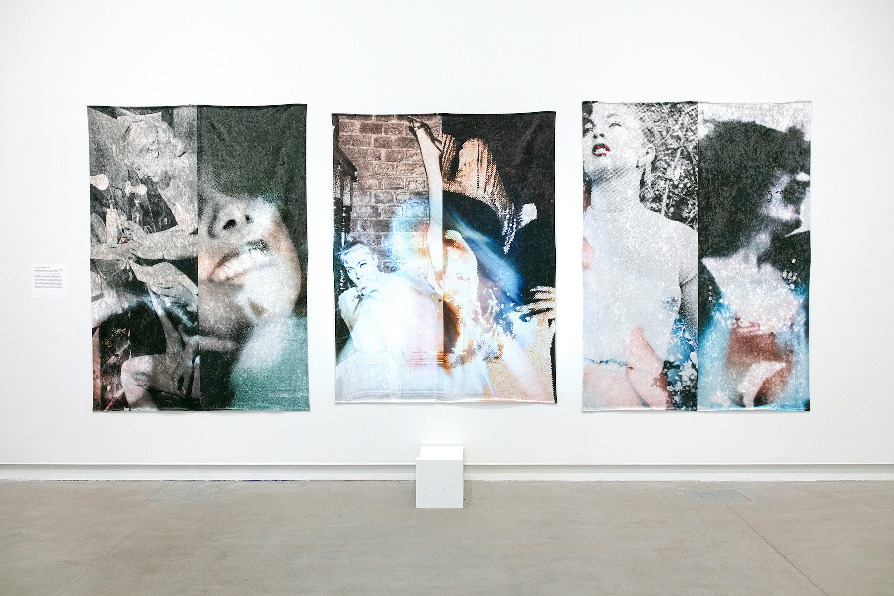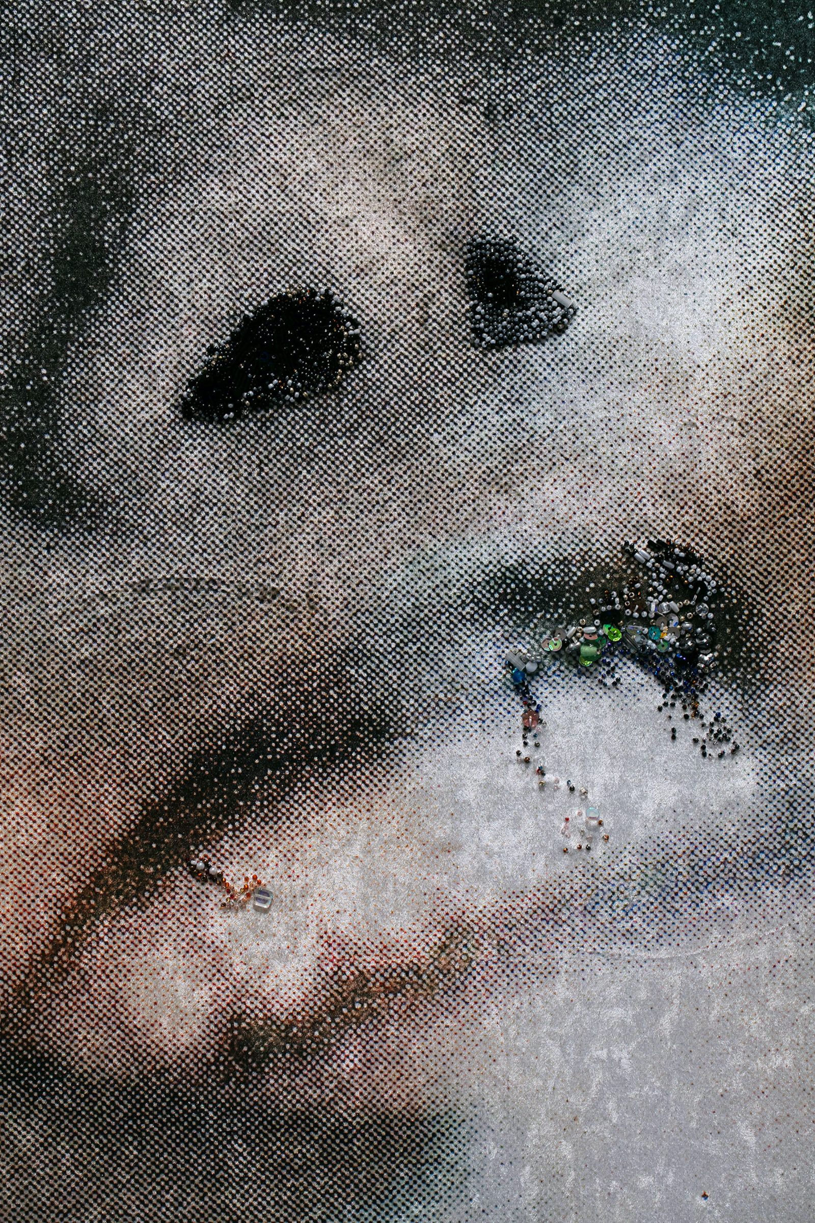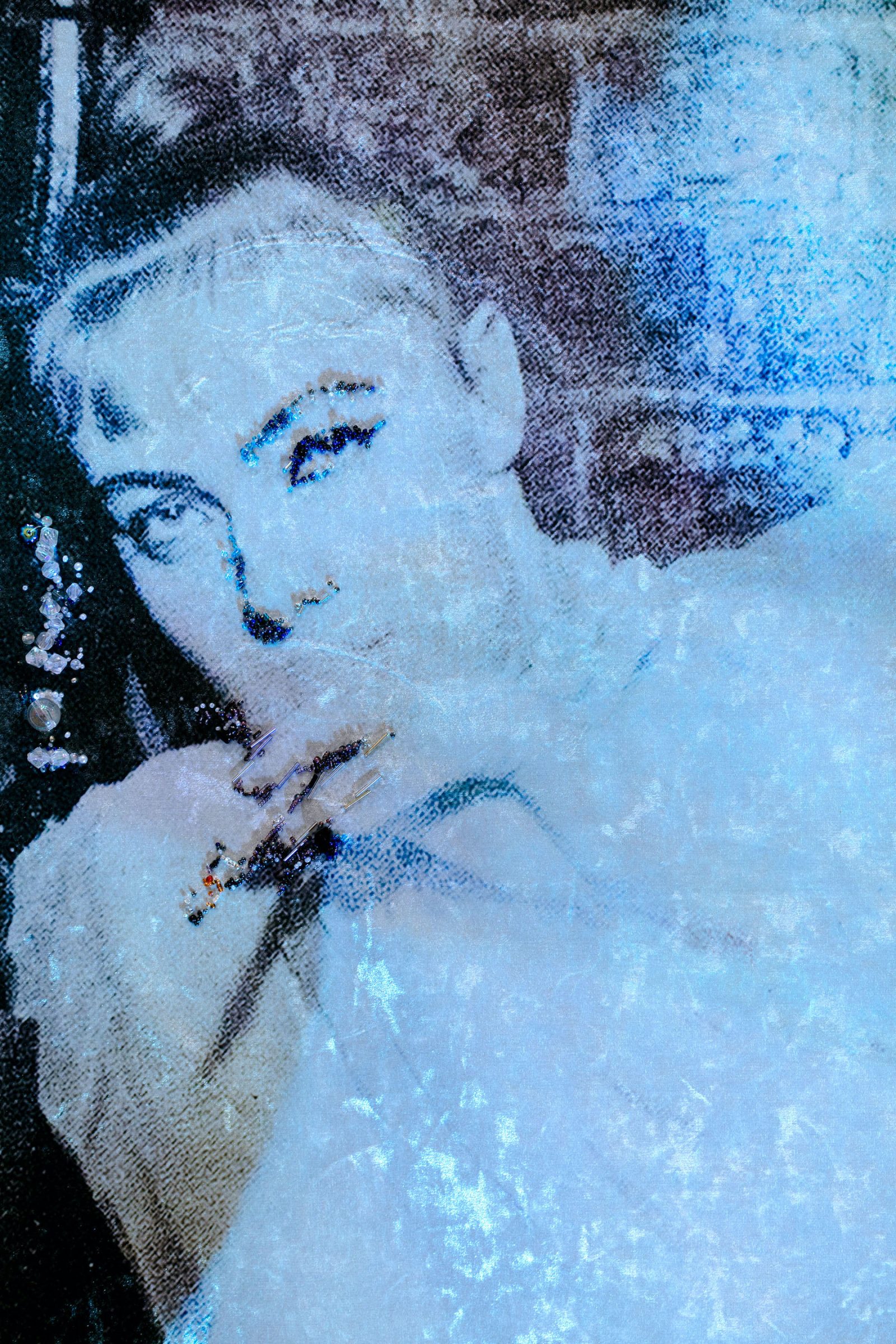 I interrogate trans and non-binary femme representation through fiber art, new media, and collage techniques. Sourcing material from sensationalized, often disposable media like tabloids, erotic ephemera, direct-to-video VHS films, I transform the subjects depicted therein into precious treasures. My process ensures that every interaction with my subjects’ visages is made with the utmost intention. Thoughtfully choosing and placing photographs, fabrics, and embellishments are acts of resistance. The care involved in such repetitious activities is a defiant rebuke of the idea that there are those inherently unworthy of existing.
