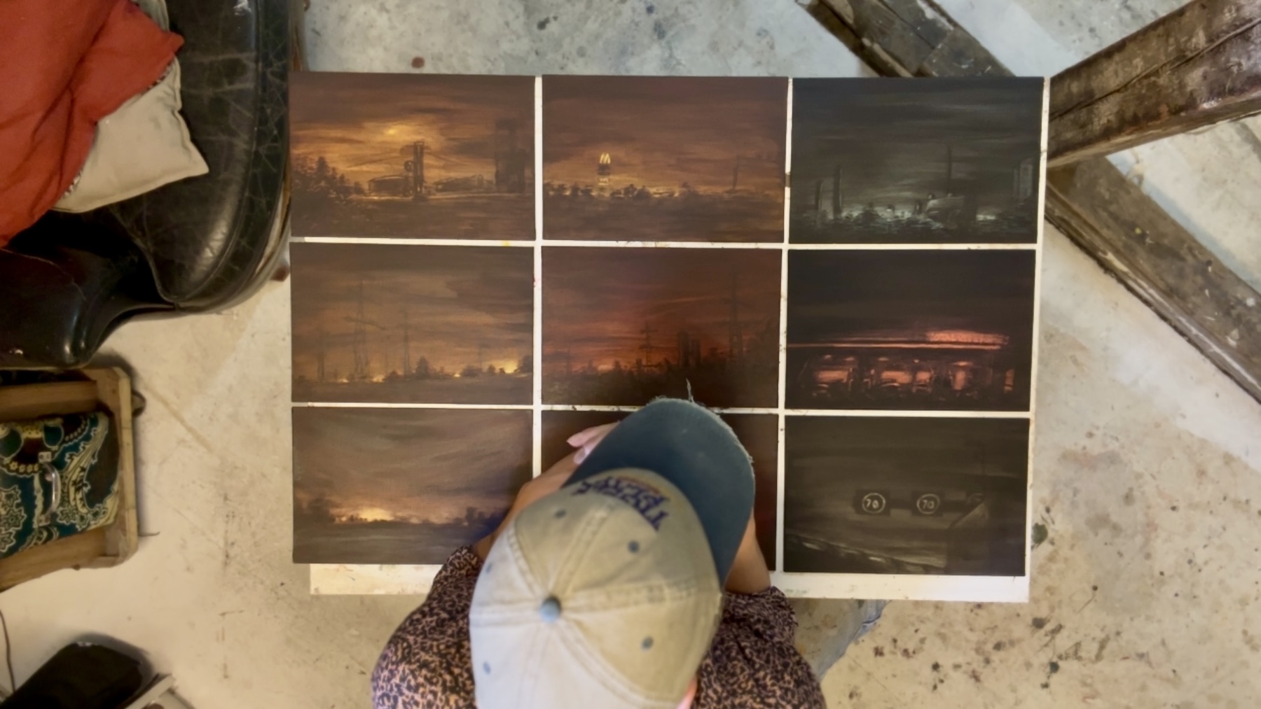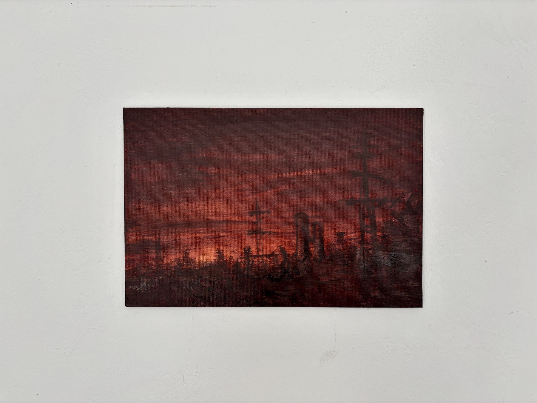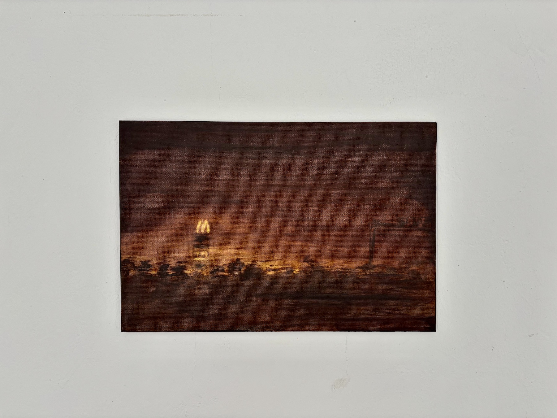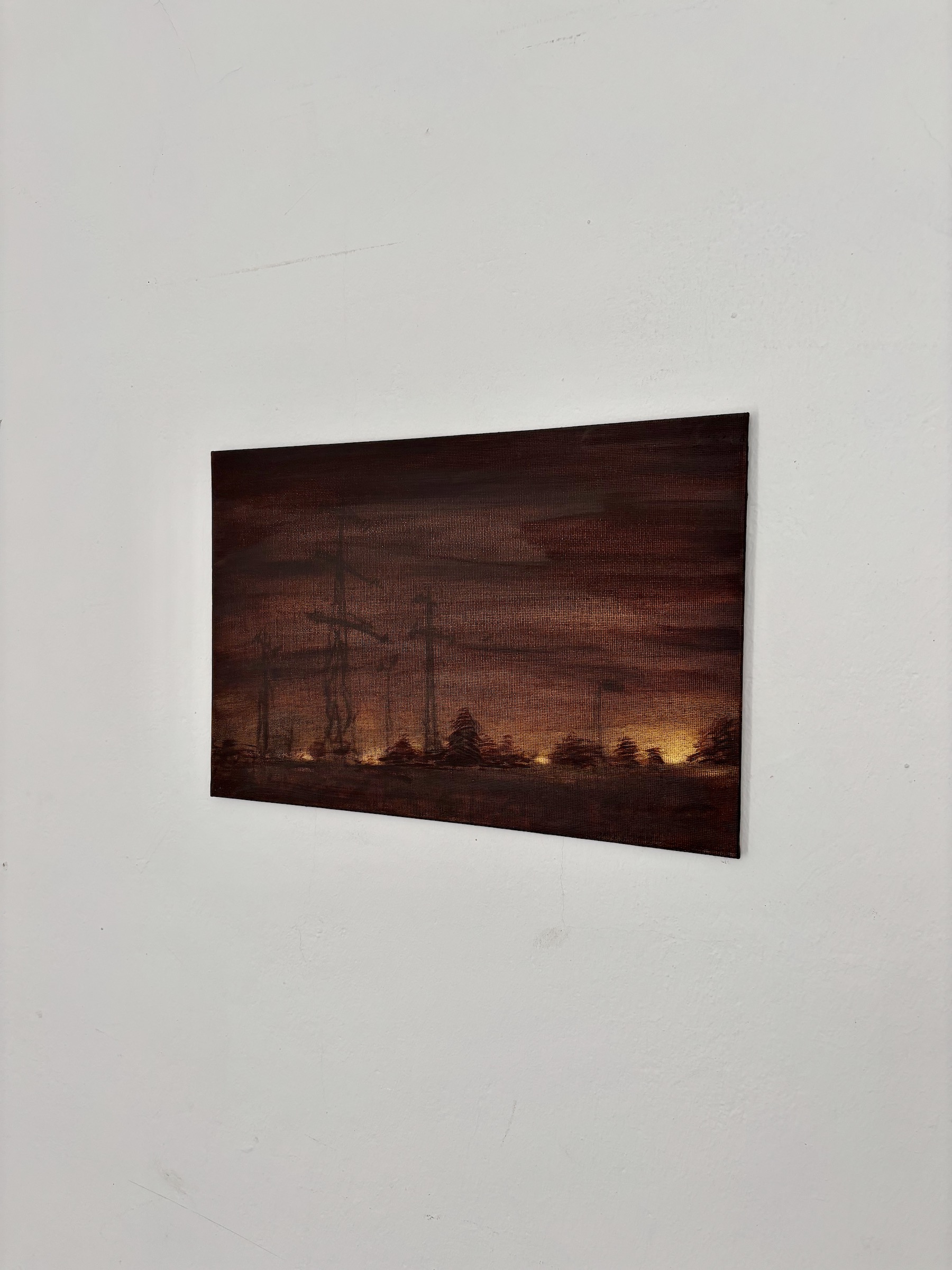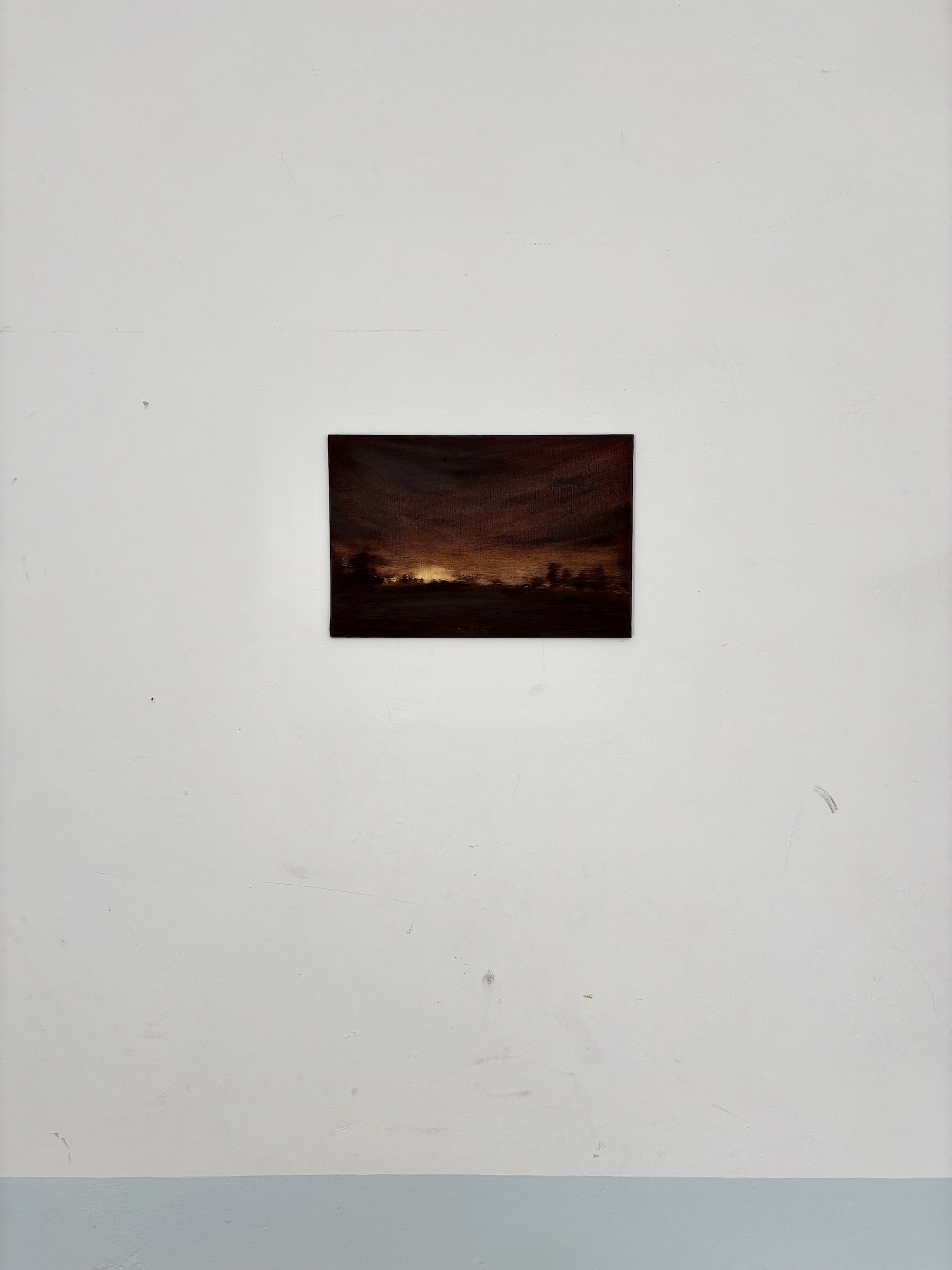 Théo Metais is a French Berlin-based contemporary painter whose work explores themes of journey, impermanence and inner transformation. Informed by a decade-long career as a film journalist, his visual language draws on the narrative power of cinema and the expressive potential of painting, illustration and comic book. Working primarily with a limited color palette, he employs charcoal, oil paint, ink and various printmaking techniques to reinterpret photograph into compositions that merge figuration and landscape. Through his refined use of blur and motion, his work invites quiet reflection on memory, movement, and the passage of time, all with a dash of humor.