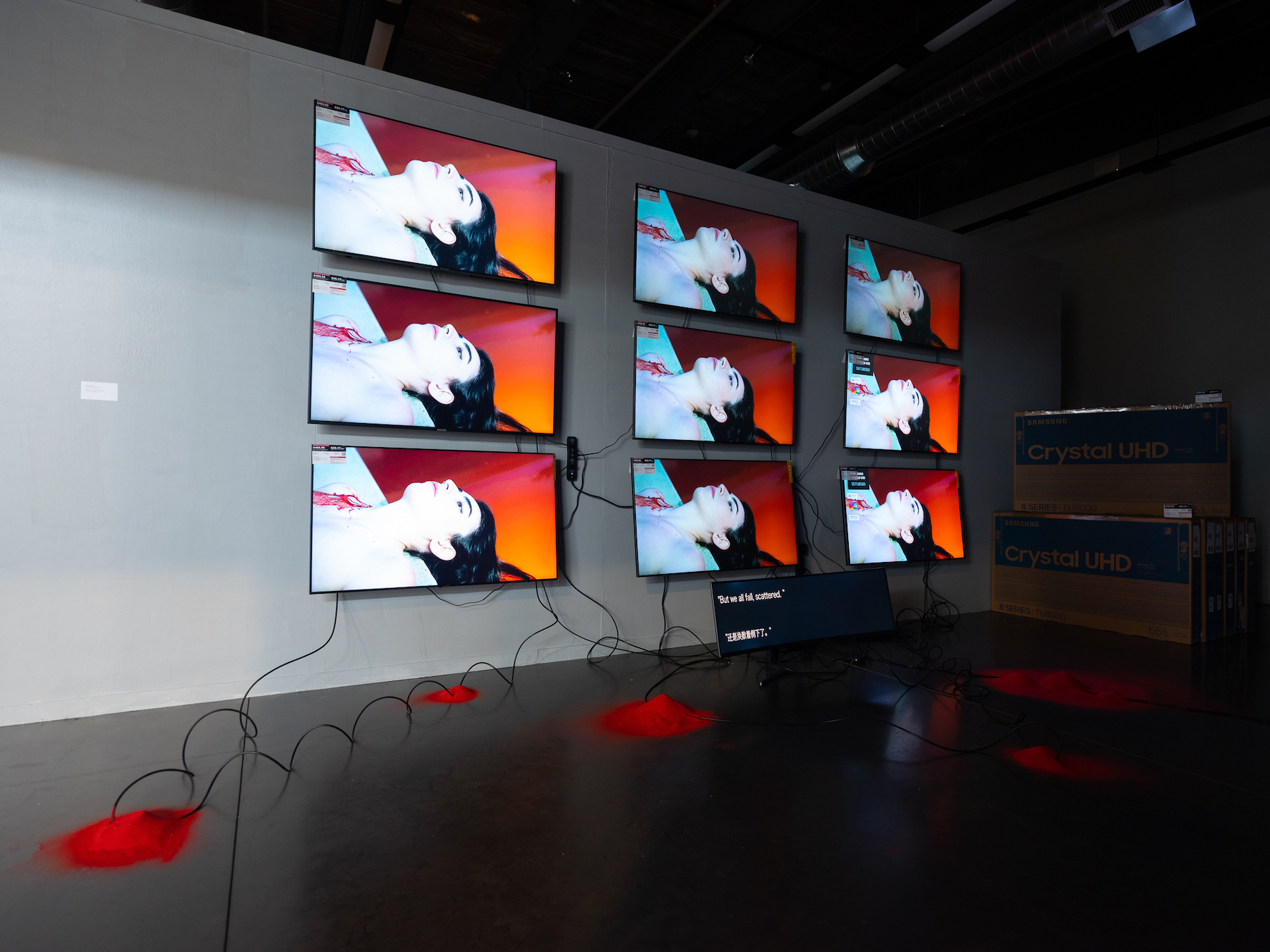 Xinyi Mei configures an interplay of time-based apparatuses—video, film, photography, performance, mixed-media installation, and writing—to instantiate ephemeral dialogical situations. Her practice interrogates the ruptures, distortions, and entropic flows of communication, examining the mechanisms through which digital mediation dissolves intimacy, presence, and affect. Mei’s work operates within the space of the post-historical, where eros and pathos are fragmented, processed, and redistributed across the networks of virtuality, rendering encounters both disembodied and hyper-sensual.