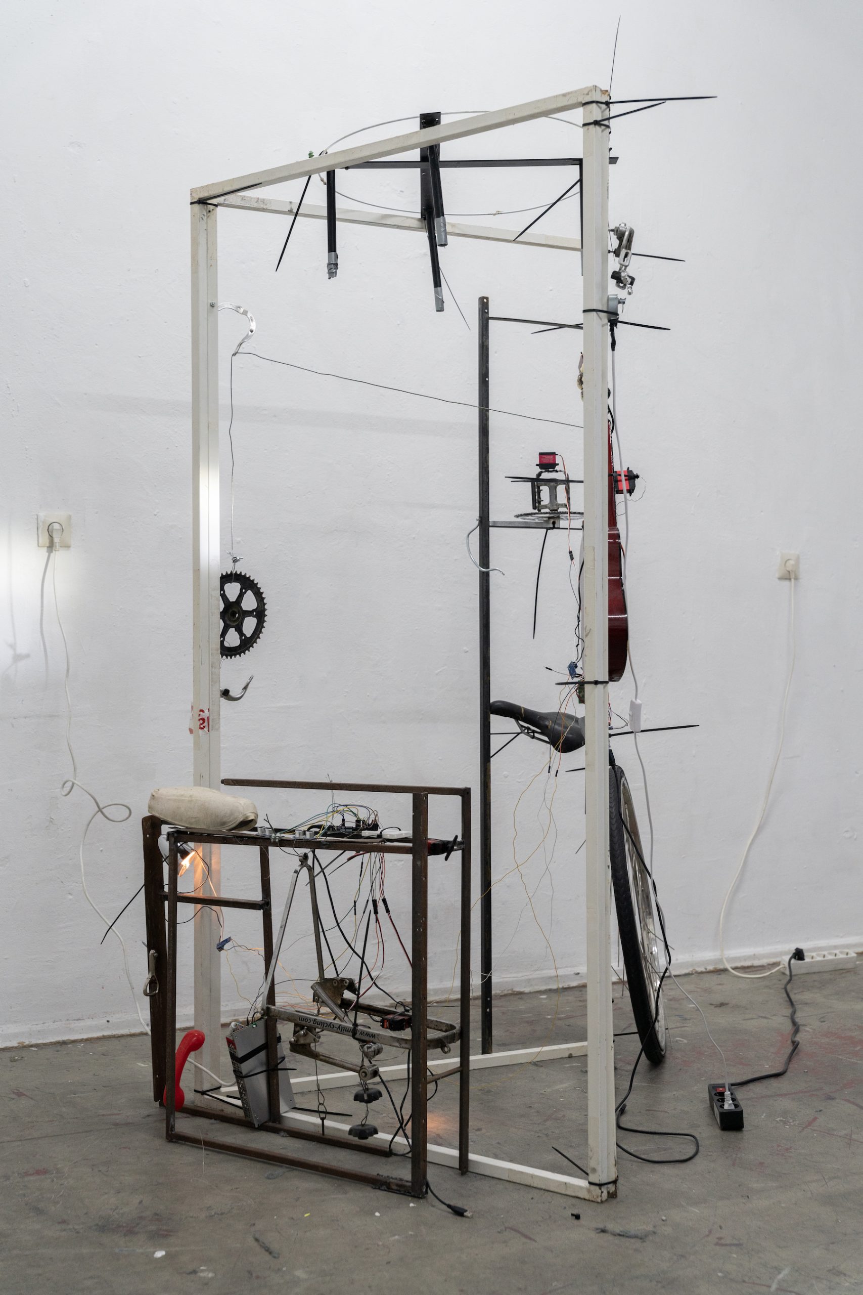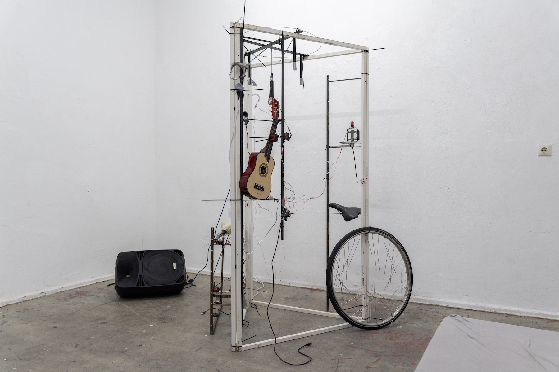 At GlogauAIR, Bing collects discarded objects from the streets of Berlin to create a self-playing sound installation. These waste materials, carrying traces of human history and culture, become active agents telling their own stories. In the performance, Bing joins the system— disturbing and rebalancing it—to blur the boundaries between object and subject. By letting these objects play by themselves instead of being controlled by humans, the work seeks to break the binary structure between human and nonhuman, and to imagine new forms of coexistence through sound, rhythm, and chance.