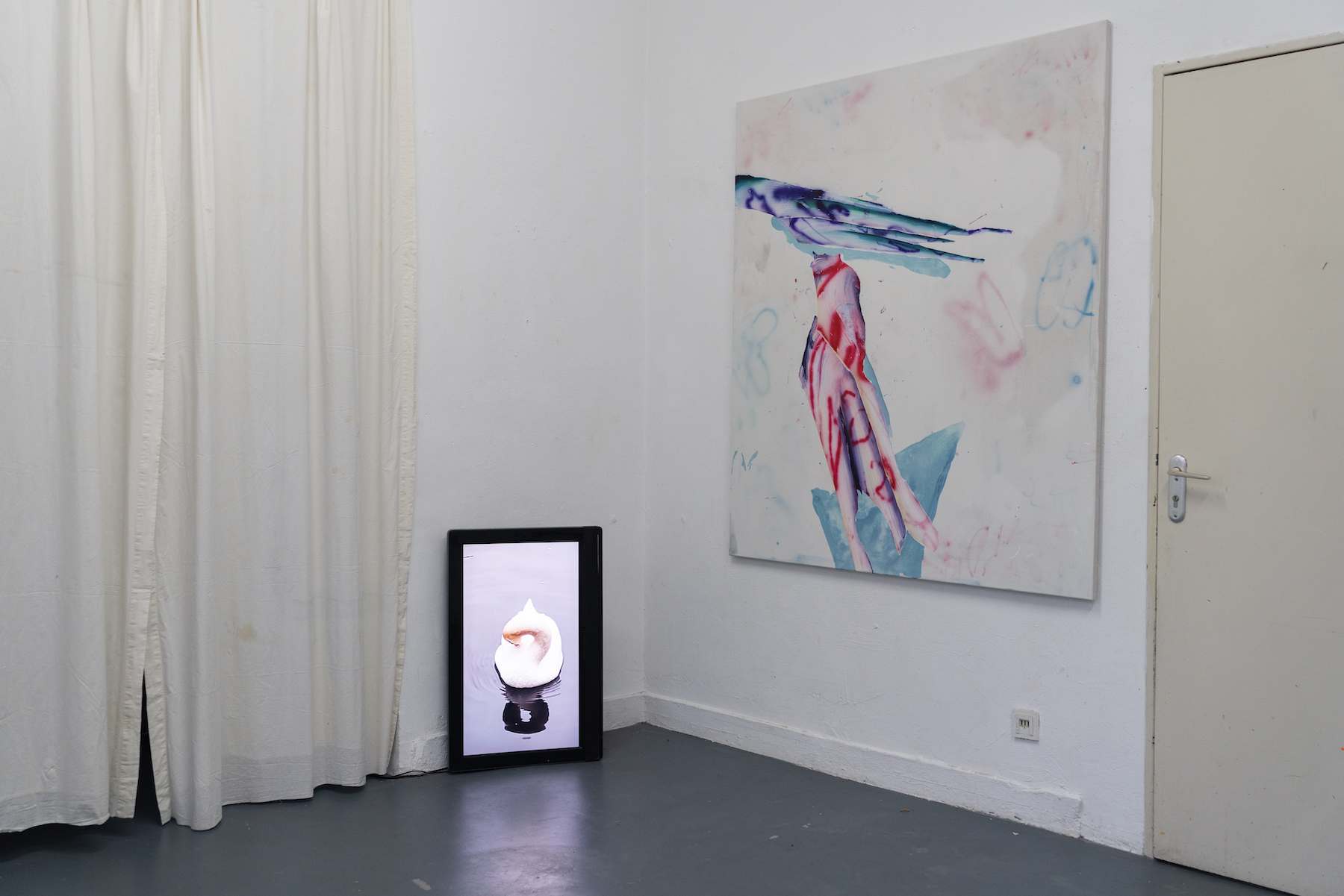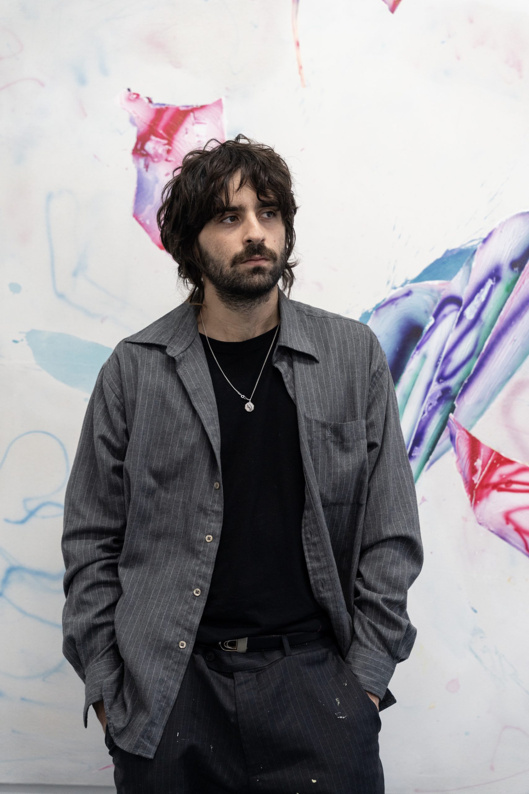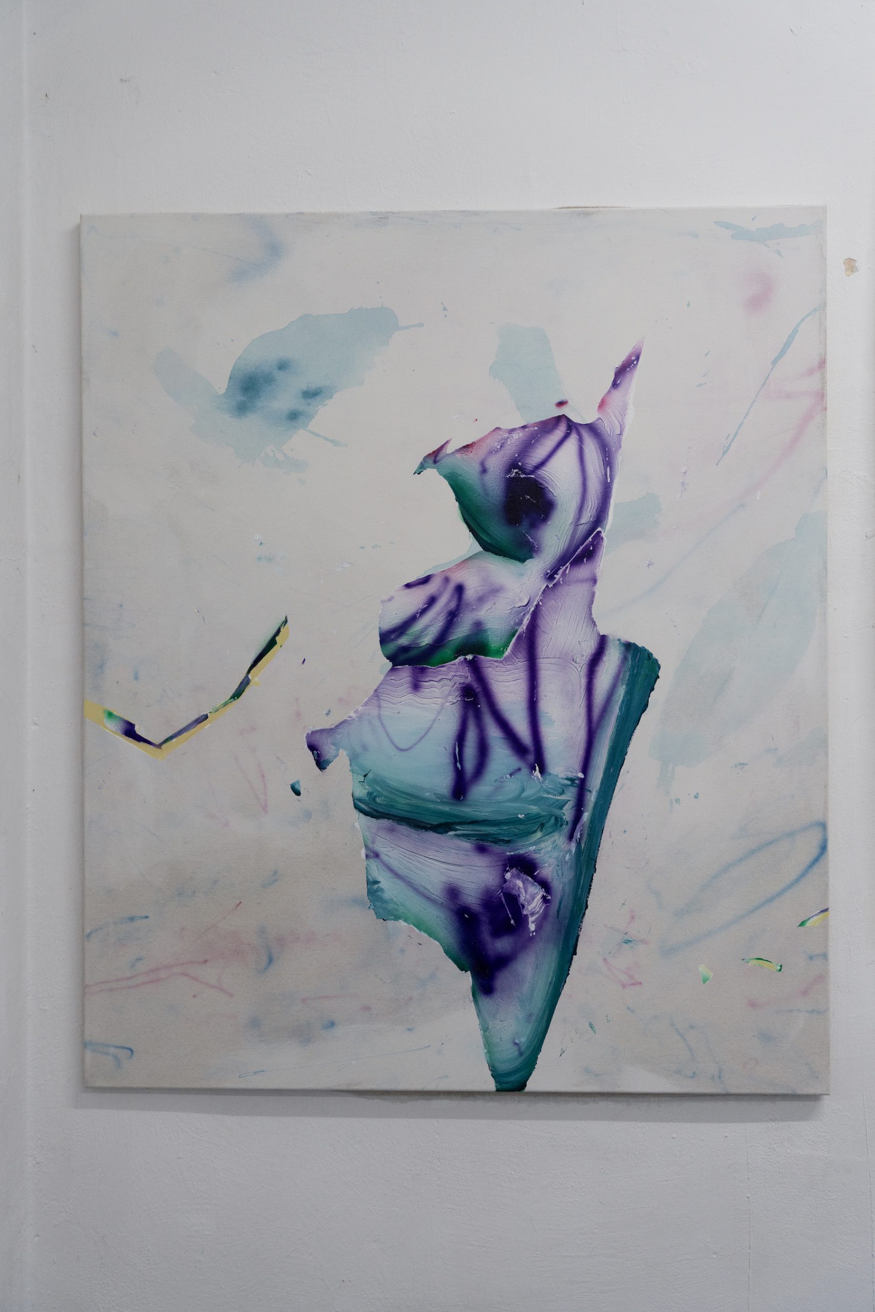 In the studio, Pesudo works intuitively, seeking out unexpected and unsettling forms. For him, the canvas is an unknown space—one that reveals itself only through the act of painting. It is a process of summoning an image and a sensation not yet known.