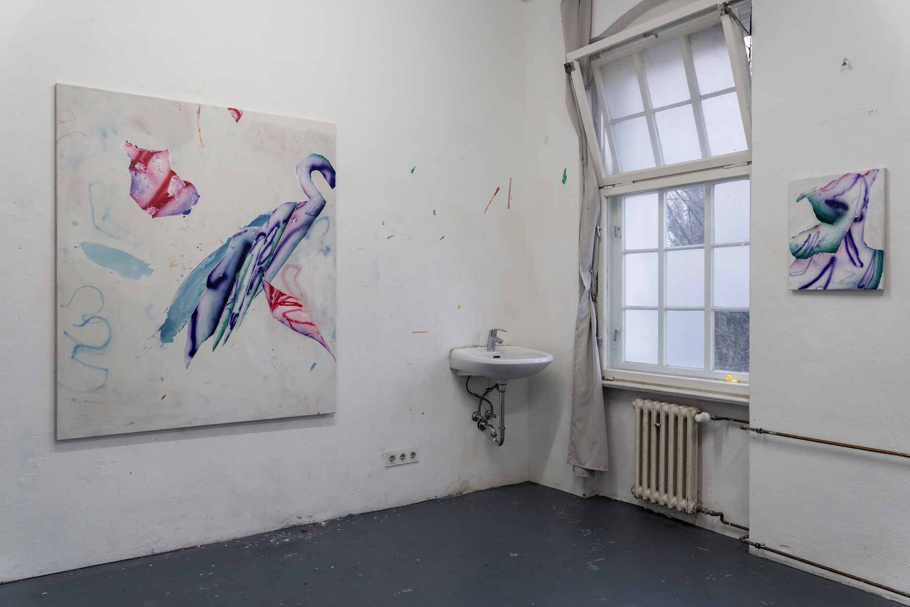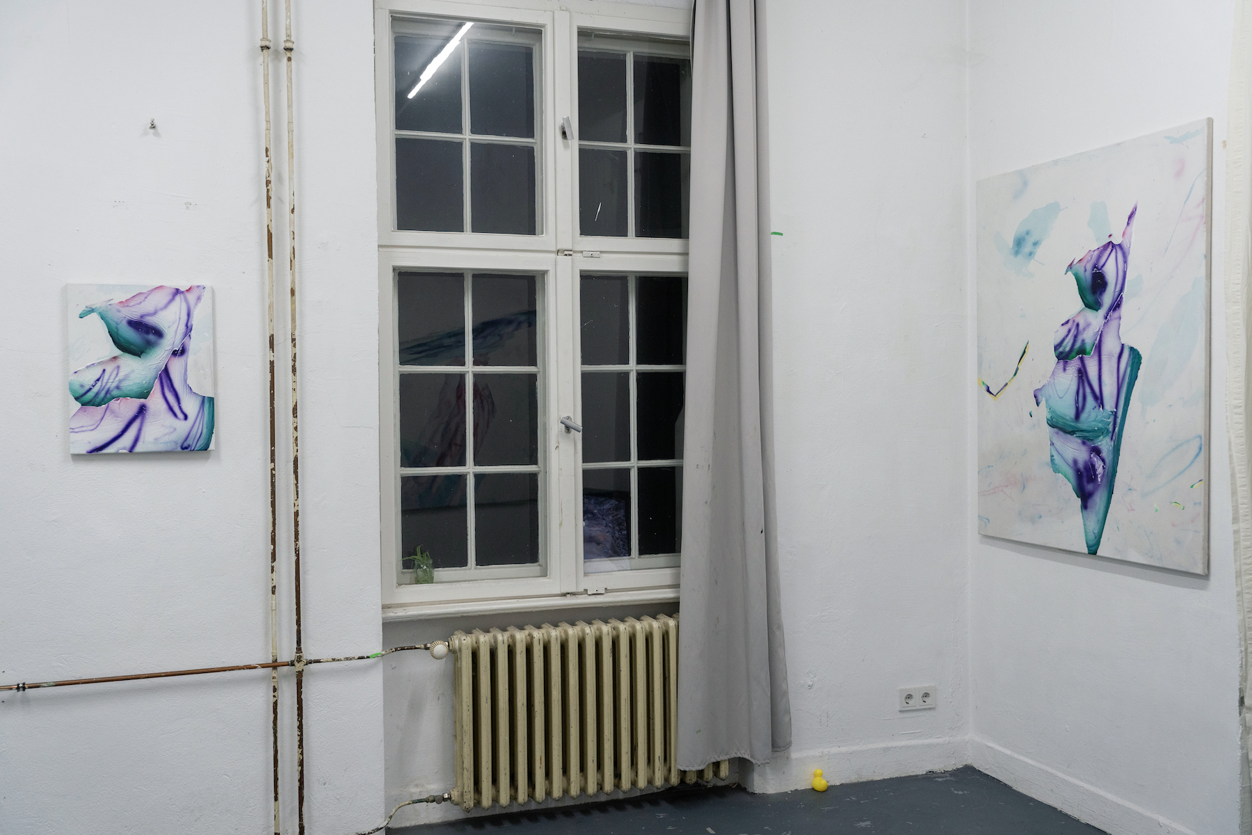 Pesudo has a relationship with Berlin that goes beyond his residency at GlogauAIR; there have been certain milestones in his creative process that were born in this city. This new series aims to revisit those symbols in order to transform them into his new proposal. On this occasion, the artist focuses on the surroundings of the residency, particularly focusing on the nearby canal.