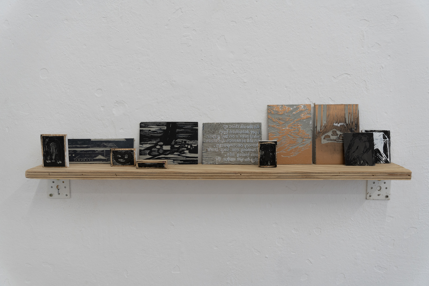 Her work also highlights how prints reproduce their own mirror images, and how the use of pressure is always required in the process. This is represented by the sentences printed with linocut, which imply the powerplay in misogynistic and racist encounters she has experienced. Her goal is to experiment further with such characteristics of prints in order to reflect on the relationships she builds with people and cities.