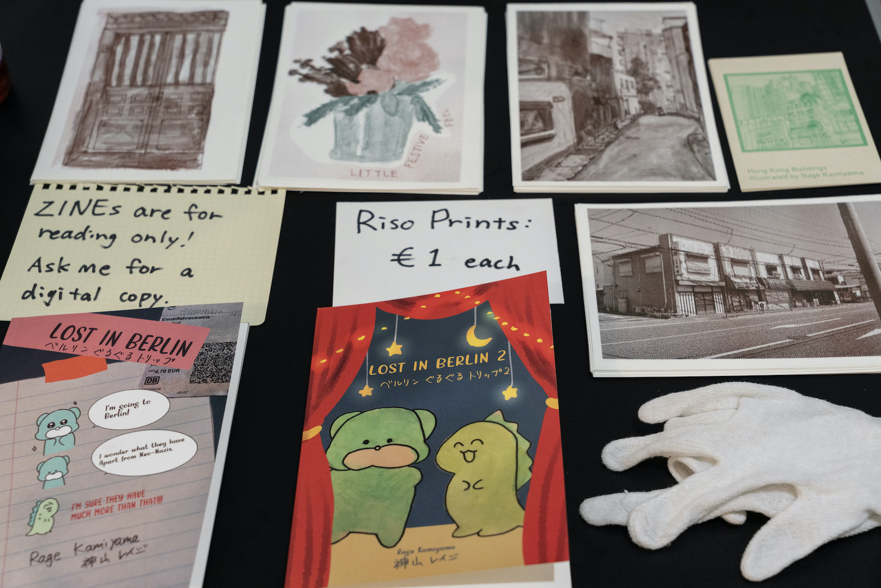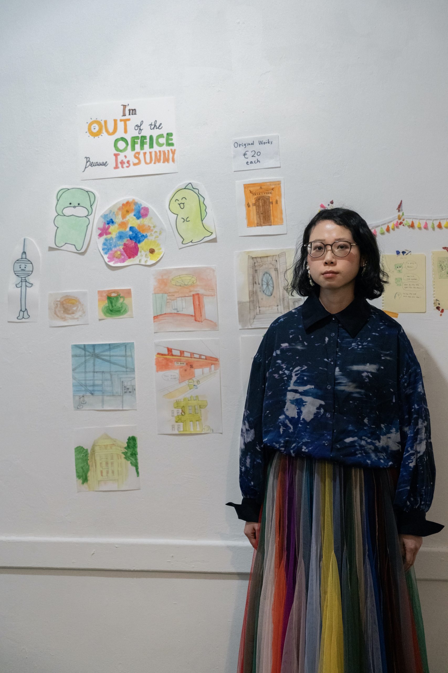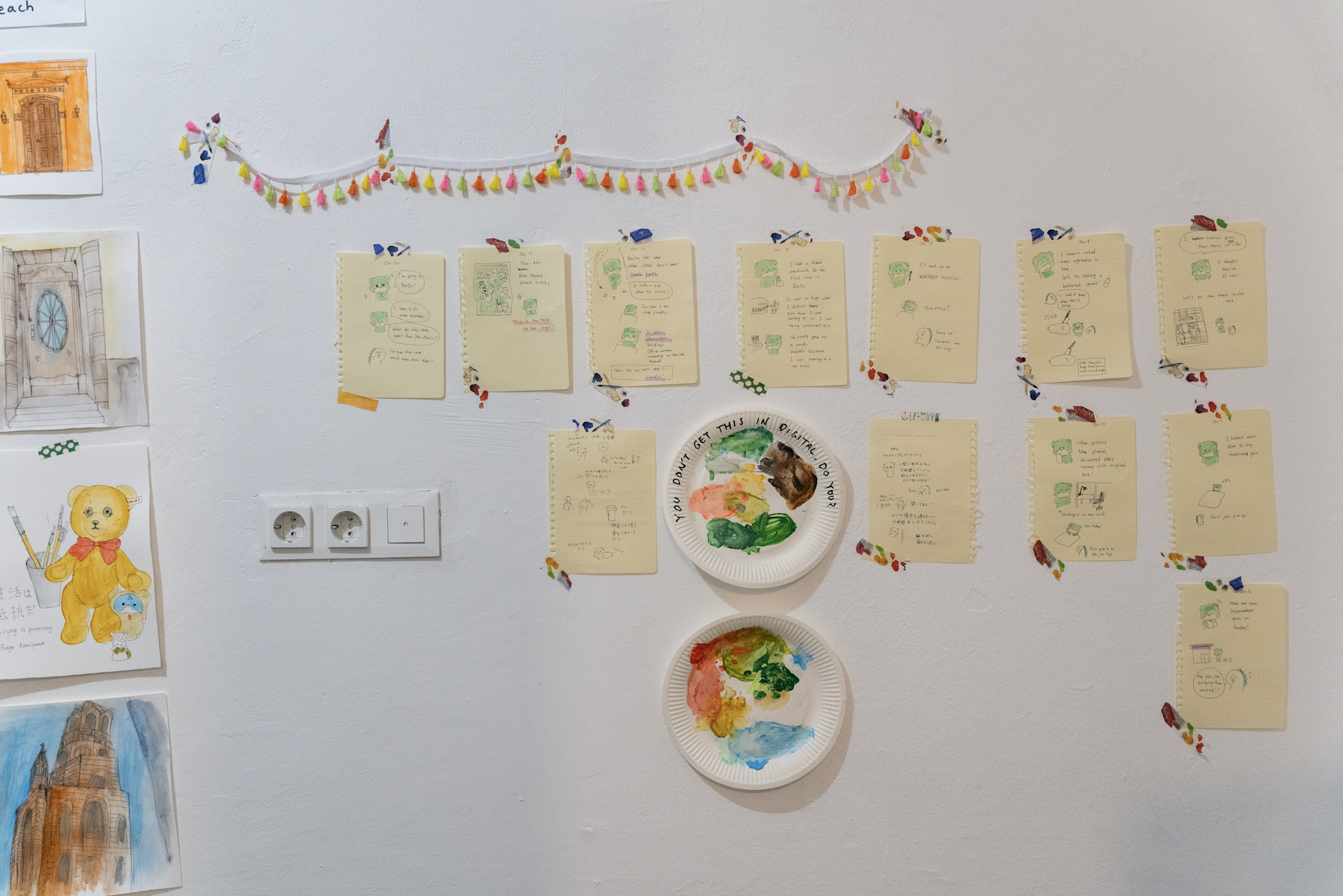 You can see Kamiyama’s latest essay comic zine about their life during the residency at Open Studios, along with acrylic paintings and sketches of Berlin displayed as well.