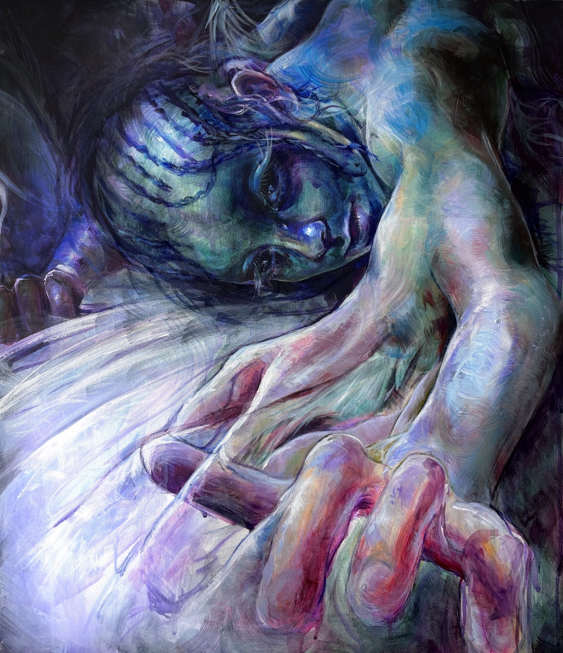 Through acrylic painting, digital art, and charcoal illustration, I aim to capture the intimate process of trans-species transformation. My inspirations are drawn from the bird-like deities known as ‘Tengu’, the ritualistic ‘Shishi Odori’ tradition where dancers embody the deer to ward off evil spirits, and the fluid nature of shape-shifting dragons within Japanese folklore. Through these works, I highlight a continuity between humanity and the environment that is so often forgotten in the chaos of modernity. I seek to prove that the body and the land are not separate categories, but that to be human is to be an active extension of an interdependent ecosystem rather than merely an observer of it.