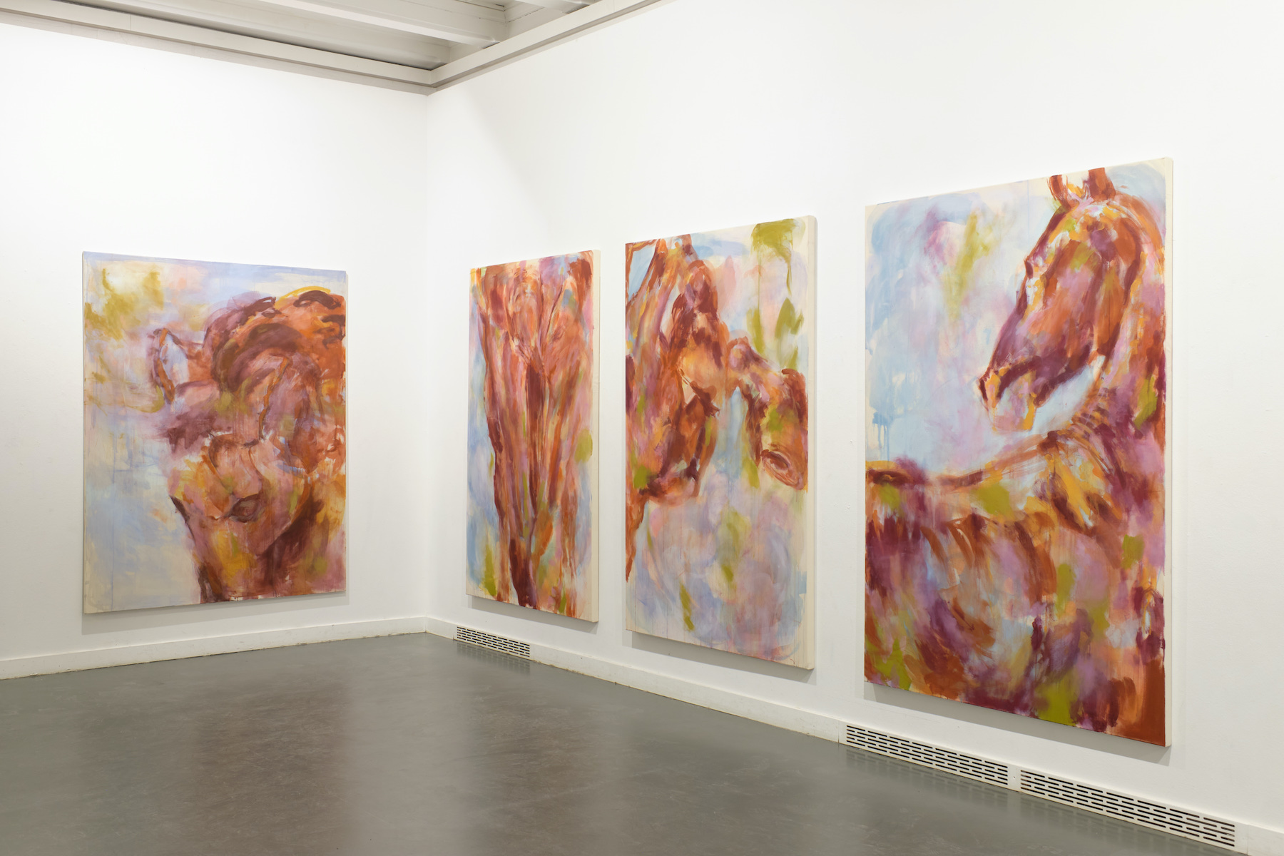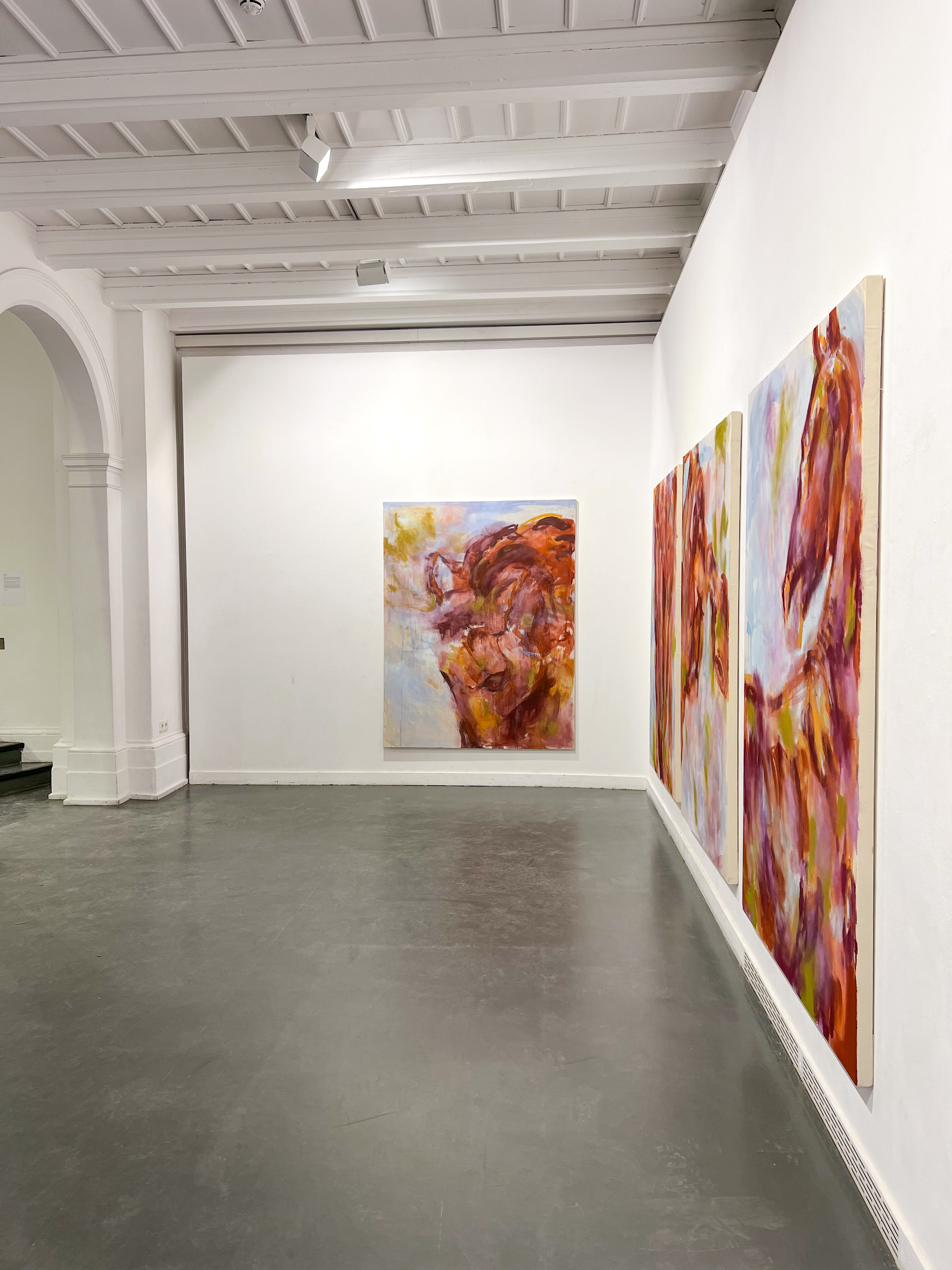 During her residency at GlogauAIR in Berlin, her practice underwent an important moment of transition. There she initiated the series After the Gallop, a group of paintings exploring the memory of movement and the energy that lingers after an action — like the invisible trace a horse leaves behind after a gallop. Marked by expansive and physical gestures, the works reflect a way of painting closely connected to the body and to movement.