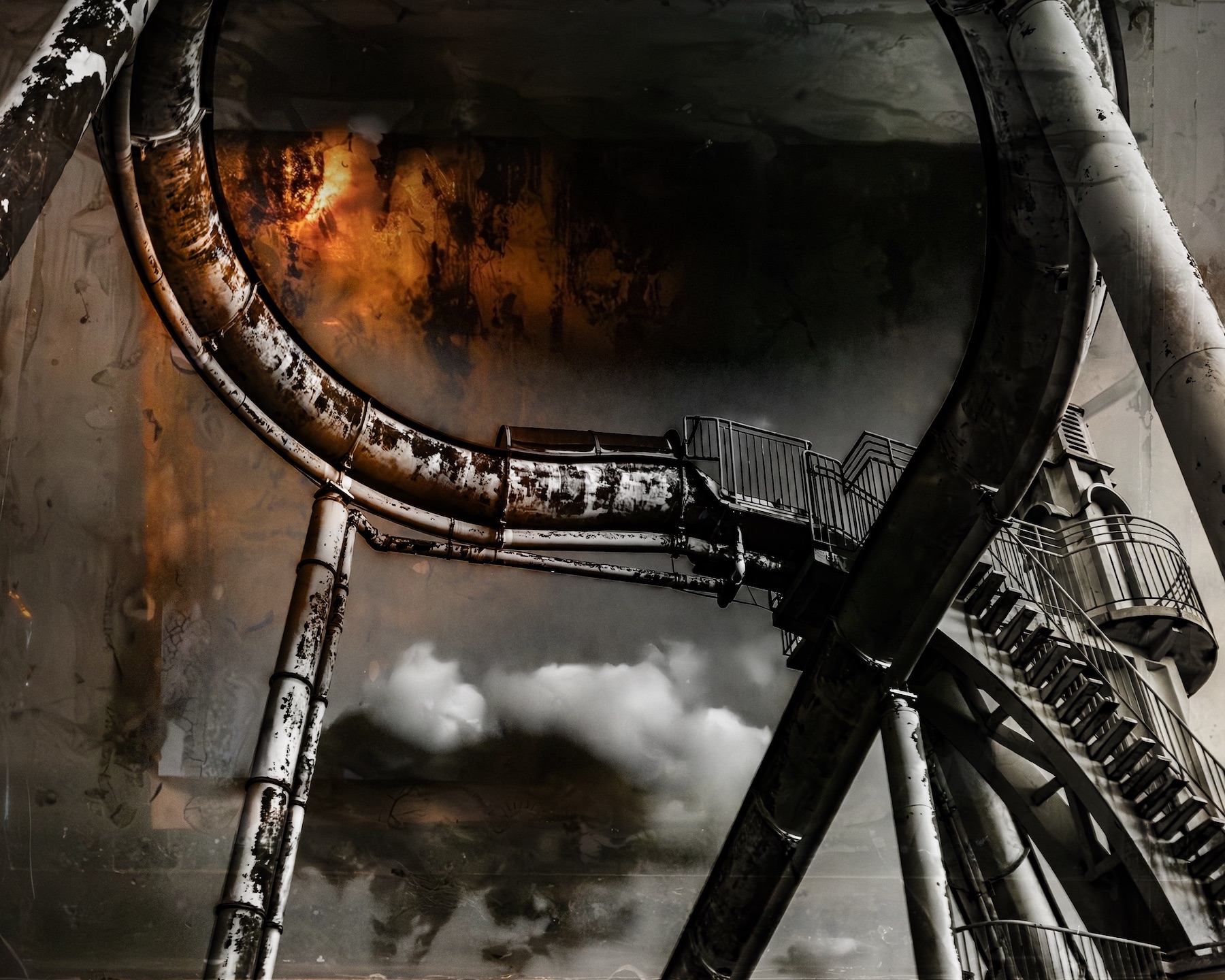 The insertion of urban and industrial ruins extends the personal into collective terrain, aligning bodily and emotional rupture with landscapes of decay. In doing so, the work addresses deterioration, survival, and renewal—always more than autobiography.