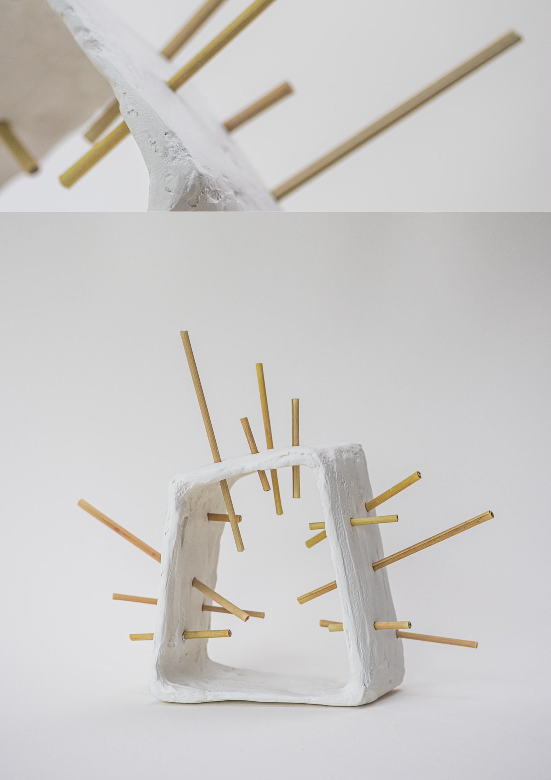 During her three-month residency, Moffatt has explored combining elements from urban landscapes with natural materials. She used plaster as her material of choice, constructed into window - like forms.