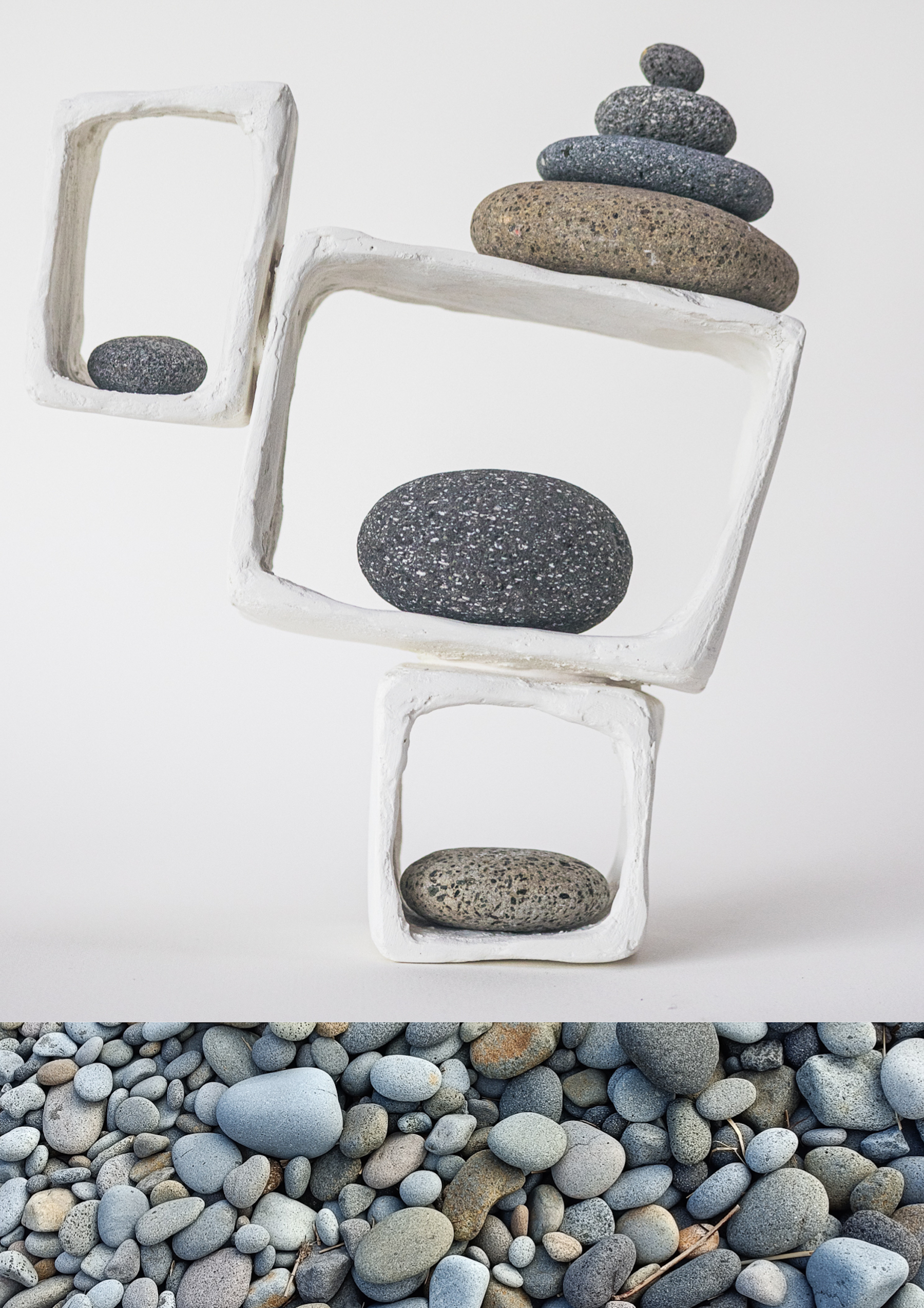 These forms resemble the raw, sharp and unpolished aspects of her upbringing in the largest housing estate in East Berlin during the 1980s. Reviewing her childhood photographs during the residency, happy memories resurfaced, each image a gentle homage to that time. Together with natural materials of her current life in rural New Zealand, such as harakeke (NZ flax), natural dyes and rocks, they form a dialogue between two places and two lives.