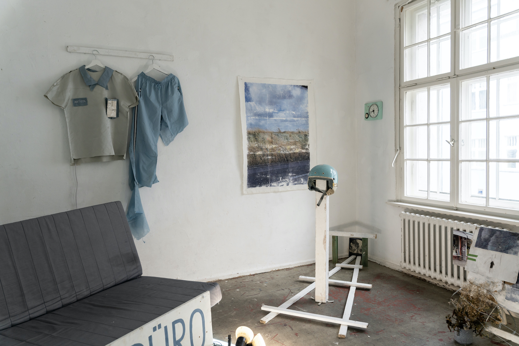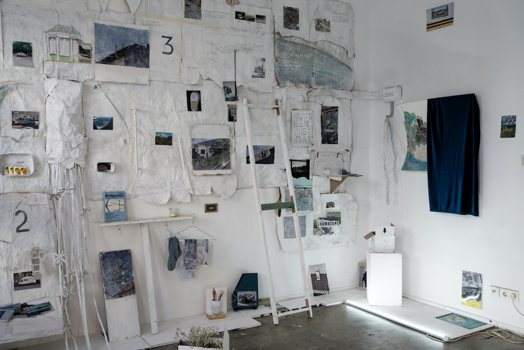 At GlogauAIR she engages with Berlin intuitively, like someone flirting without hurry. The notion of travel structures her process, allowing questions of distance, dislocation, and home to quietly unfold. During this period, she gathers elements from this context abroad, drawn not only to the new environment but also to the strangeness of a foreign language, so that the work itself becomes an echo of what she lived here.