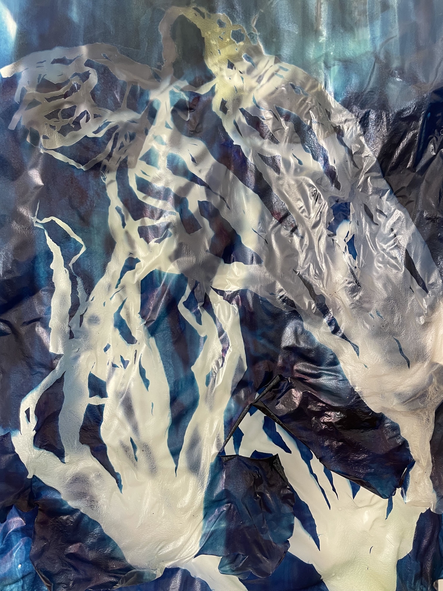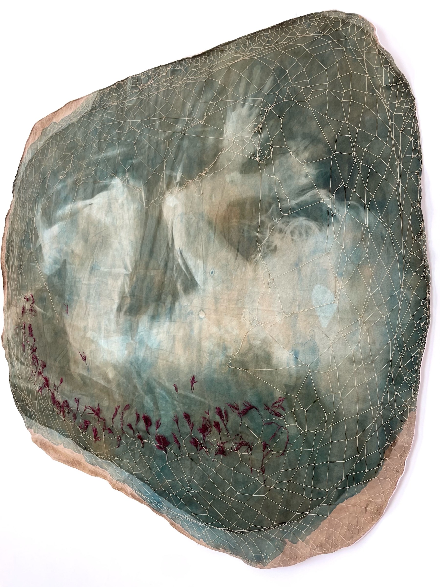This work emerges from an intimate dialogue with the northern coast of Portugal, where I gathered algae as both material and metaphor. By transforming these fragments of the sea into shrouds designed to wrap, drape, and adorn the human figure, I explore the fragile threshold between body and environment. How might the human body might be held by the ocean, not as conqueror or extractor, but as one wrapped in its embrace?