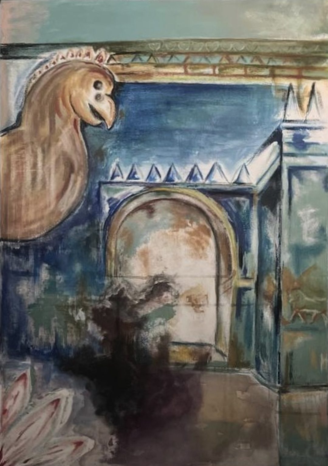 Inspired by the monument attributed to Cyrus after the conquest of Babylon. The mythical bird Homa, symbol of happiness, fades into the background — long forgotten, yet a hope to return