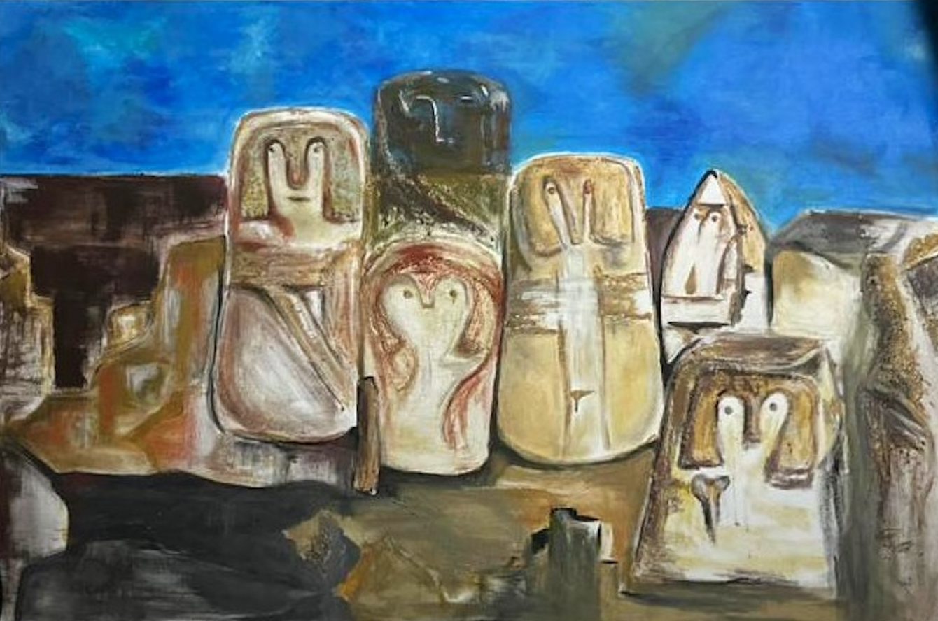 Forgotten Cries is inspired by the 8,000-year-old cemetery of Ardabil, where statues without mouths stand in silence — except for the lone figure of a woman, whose silent presence becomes the echo of voices once lost. This work reflects on suppressed memories and the fragile traces of ancient civilizations.